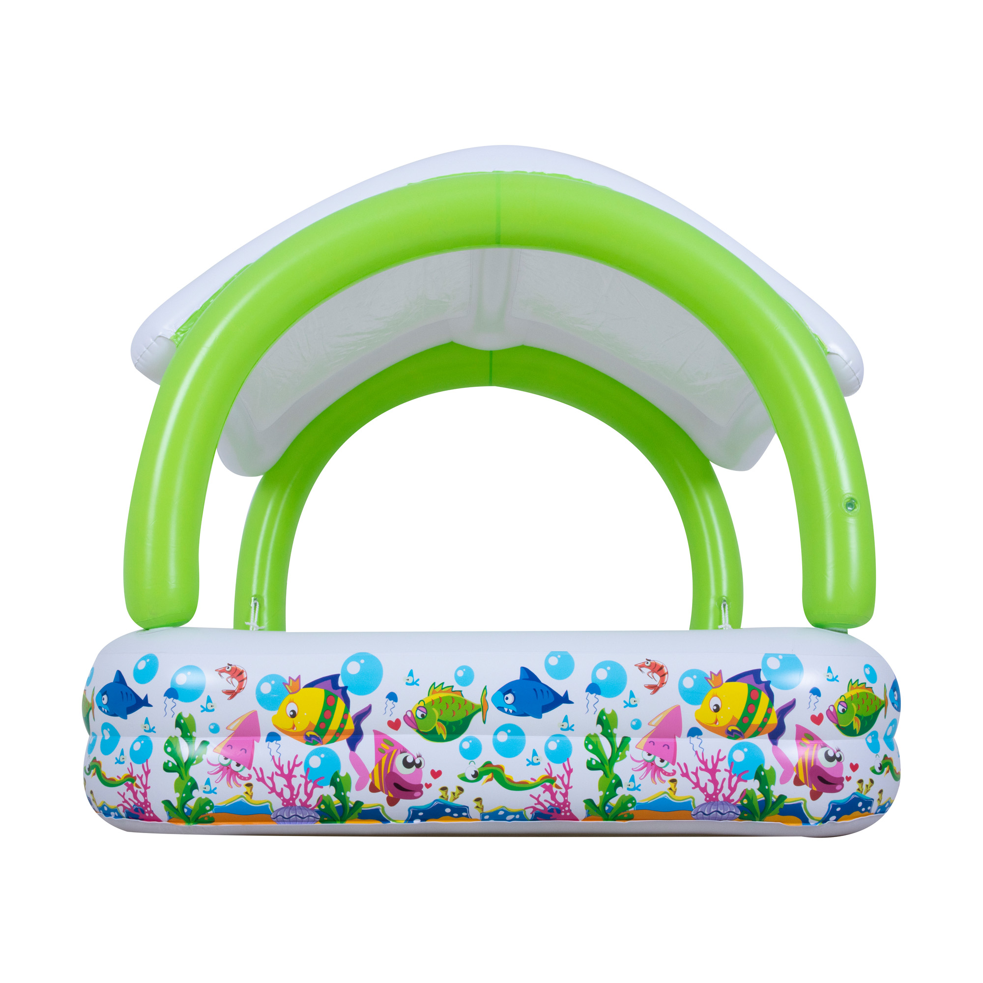 Średnica: 98 cm Wysokość (z daszkiem): 80 cm Wysokość basenu: 17 cm Pojemność: 25 l Dmuchane dno Wyjmowana dmuchana zabawka (w kształcie pandy) Materiał: PVC Łatka naprawcza: Tak Zalecany wiek: 1-3 Pobierz instrukcję obsługi Kod EAN: 6920388618915 |