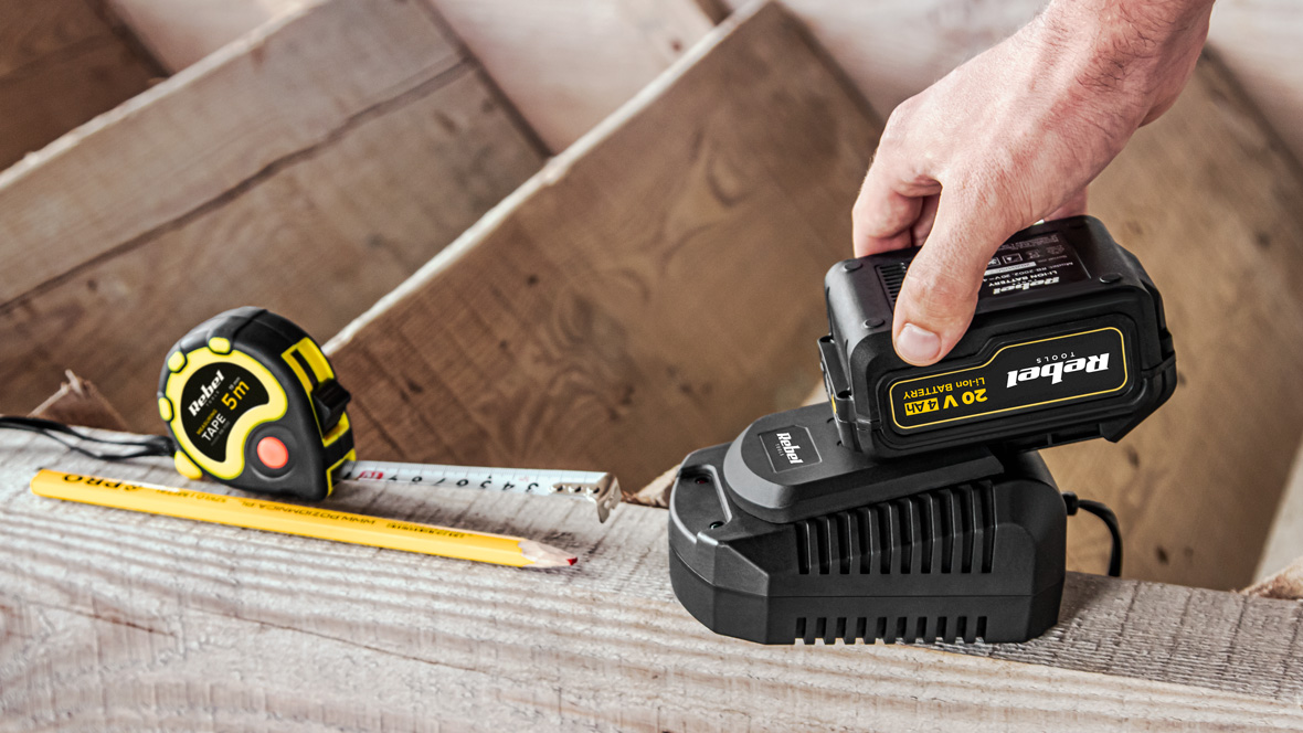 Nie przerywaj pracyAby Twoja praca trwała dłużej, bez konieczności robienia przerw na ładowanie baterii, w ofercie Rebel Tools znajdziesz także dedykowany akumulator 20 V, 4 Ah, który skutecznie wydłuży czas pracy wielu urządzeń, np. wiertarko-wkretarki, dmuchawy, nożyc i podkaszarki, a także wyrzynarki i kompresora. Dodatkowy akumulator to doskonały zastępca w czasie, gdy Twoja dołączona do urządzenia bateria właśnie się ładuje. Dzięki niemu możesz jeszcze bardziej zaangażować się w przydomowe prace.