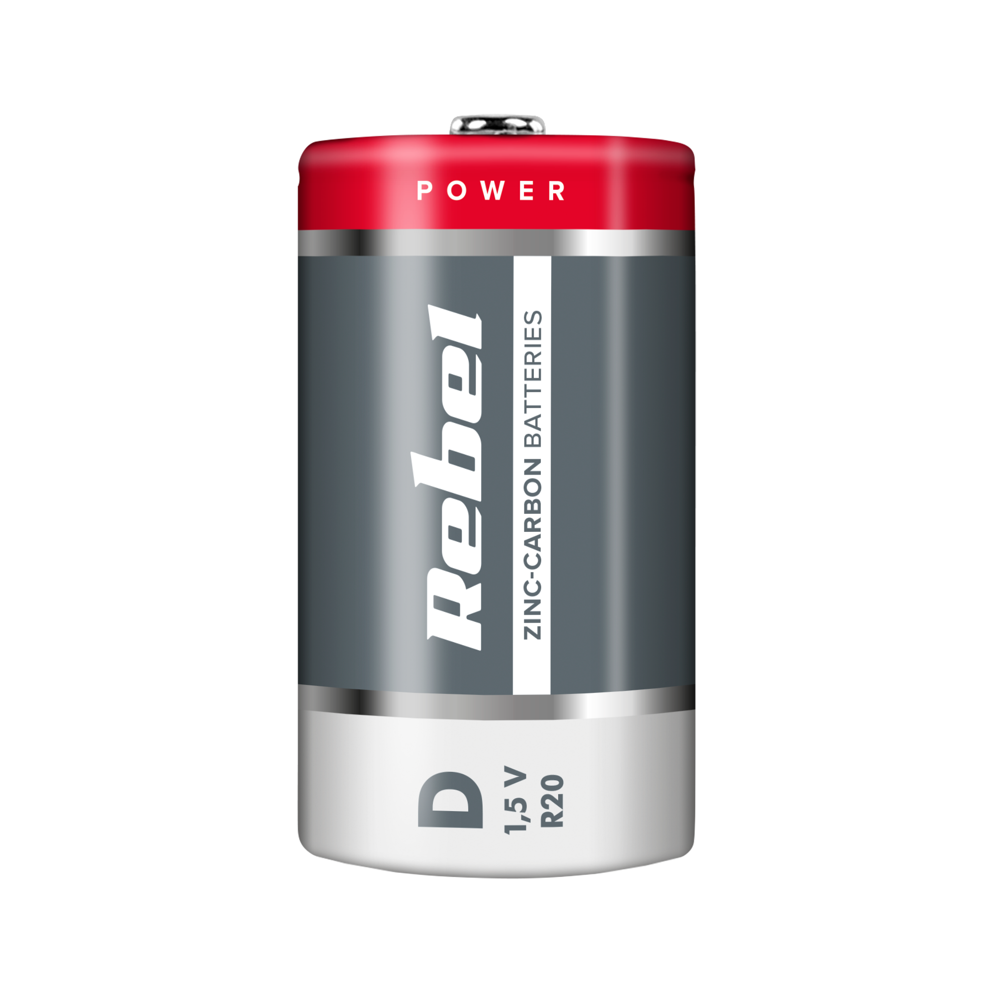 Baterie cynkowo-węglowe Rebel R20 D 2 szt./blisterBaterie cynkowo-węglowe Rebel R20 w rozmiarze D to niezawodne źródło zasilania przeznaczone do urządzeń o niewielkim poborze energii. W opakowaniu znajdują się 2 sztuki, co zapewnia wygodny zapas baterii do codziennego użytku. Są idealnym rozwiązaniem dla urządzeń wymagających stabilnego zasilania.