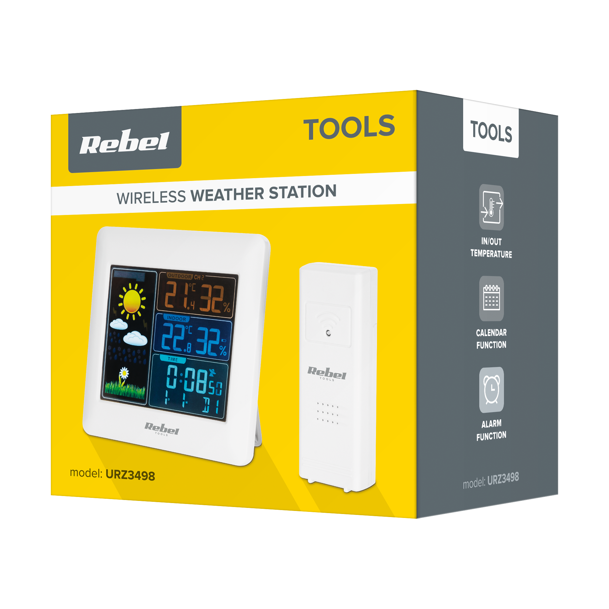 Bezprzewodowa stacja pogodowa z czujnikiem zewnętrznymStacja pogodowa Rebel to doskonałe urządzenie, które pozwala na precyzyjne monitorowanie warunków atmosferycznych w Twoim domu i na zewnątrz. Dzięki zaawansowanym funkcjom, takim jak pomiar temperatury, wilgotności, ciśnienia atmosferycznego oraz prognoza pogody, zapewnia pełną kontrolę nad aktualnymi warunkami.