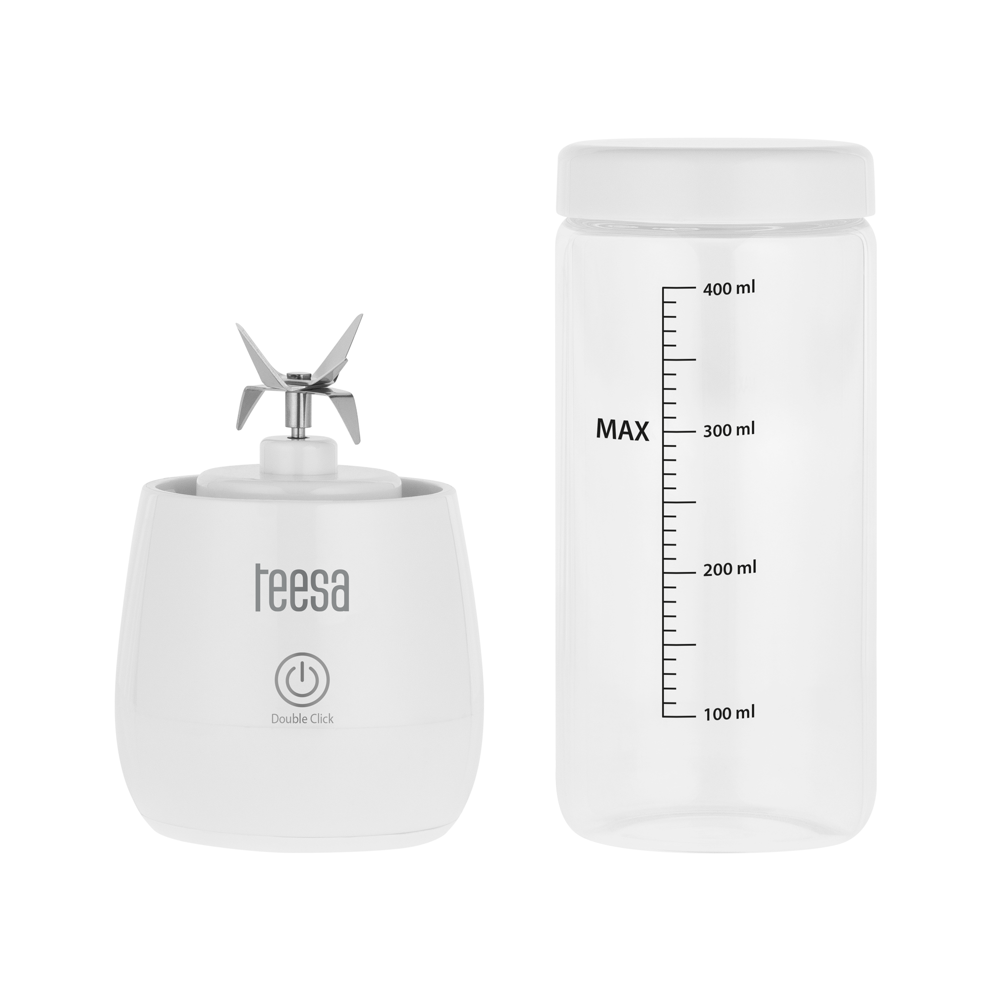 Blender personalny bezprzewodowy TSA3543Blender personalny Teesa to propozycja dla osób aktywnych oraz takich, które mimo braku czasu starają się dbać o swoje zdrowie. Urządzenie jest niezwykle łatwe w obsłudze i dotrzyma Ci kroku w każdej sytuacji. Wybierz swoje ulubione świeże owoce lub warzywa i dodaj odrobinę jogurtu lub wody. Blender pracuje z prędkością 17000 obrotów na minutę, co w połączeniu z jego mocą 100 W pozwoli zamienić te składniki w wyśmienity koktajl.
