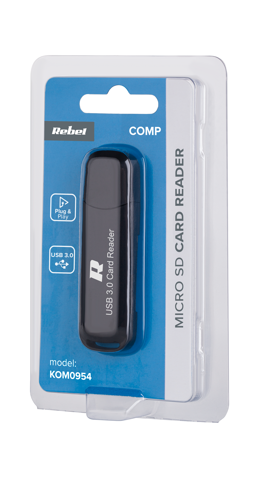 Czytnik kart pamięci USB 3.0 Rebel Comp R61Zewnętrzny czytnik kart pamięci USB Rebel umożliwia szybki dostęp do danych zapisanych na kartach SD, micro SD oraz mini SD. Akcesorium posiada interfejs 3.0, który umożliwia transfer danych z prędkością do 640 MB/s. Co ważne, czytnik jest bardzo uniwersalny i wspiera wszystkie popularne systemy operacyjne, tj. Windows, iOS oraz Linux.