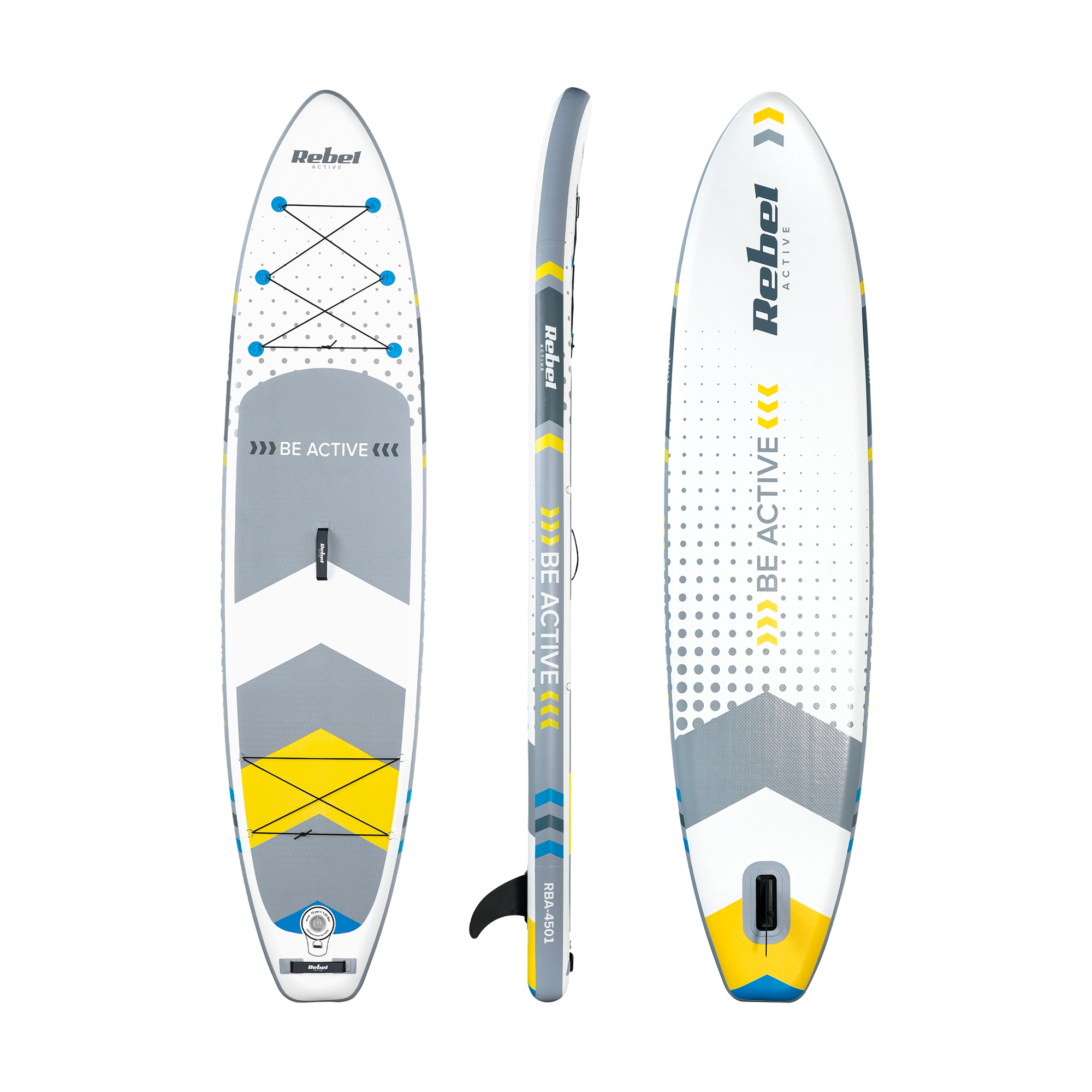 Deska SUP Rebel Active RBA-4500Wybierasz się nad jezioro i obawiasz się nudnego plażowania? Deska SUP Rebel Active RBA-4500 pozwoli Ci odkryć pełen potencjał wodnych przygód! Jest to świetne narzędzie do tworzenia miłych wspomnień z rodziną i przyjaciółmi. Dzięki desce do pływania możesz organizować wycieczki wodne, by cieszyć się aktywnością fizyczną i otaczającą Was przyrodą.