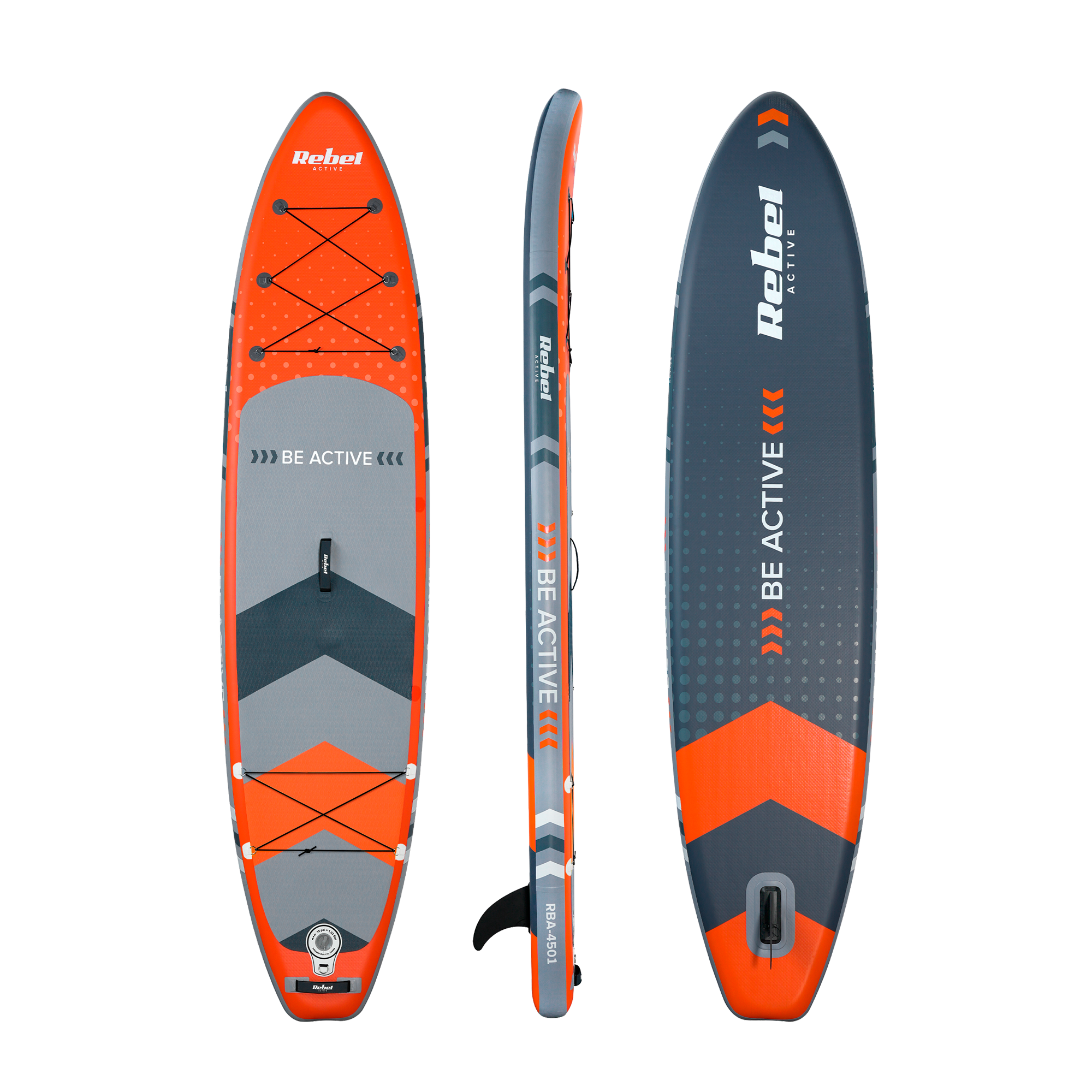 Deska SUP Rebel Active RBA-4500Wybierasz się nad jezioro i obawiasz się nudnego plażowania? Deska SUP Rebel Active RBA-4500 pozwoli Ci odkryć pełen potencjał wodnych przygód! Jest to świetne narzędzie do tworzenia miłych wspomnień z rodziną i przyjaciółmi. Dzięki desce do pływania możesz organizować wycieczki wodne, by cieszyć się aktywnością fizyczną i otaczającą Was przyrodą.