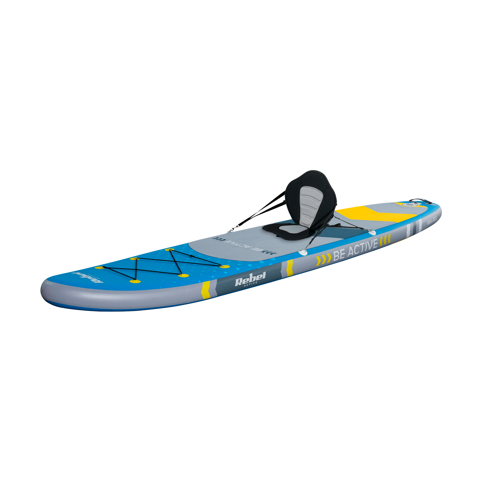 SUP z siedziskiemDla jeszcze większego komfortu i stabilności podczas pływania w zestawie z deską SUP Rebel Active znajdziesz wygodne siedzisko z oparciem, które w zależności od swoich preferencji możesz łatwo zamontować i zdemontować. To rozwiązanie pozwala na wygodny odpoczynek podczas dłuższych wycieczek na wodzie. Usiądź, zrelaksuj się i ciesz się widokami i spokojem natury.