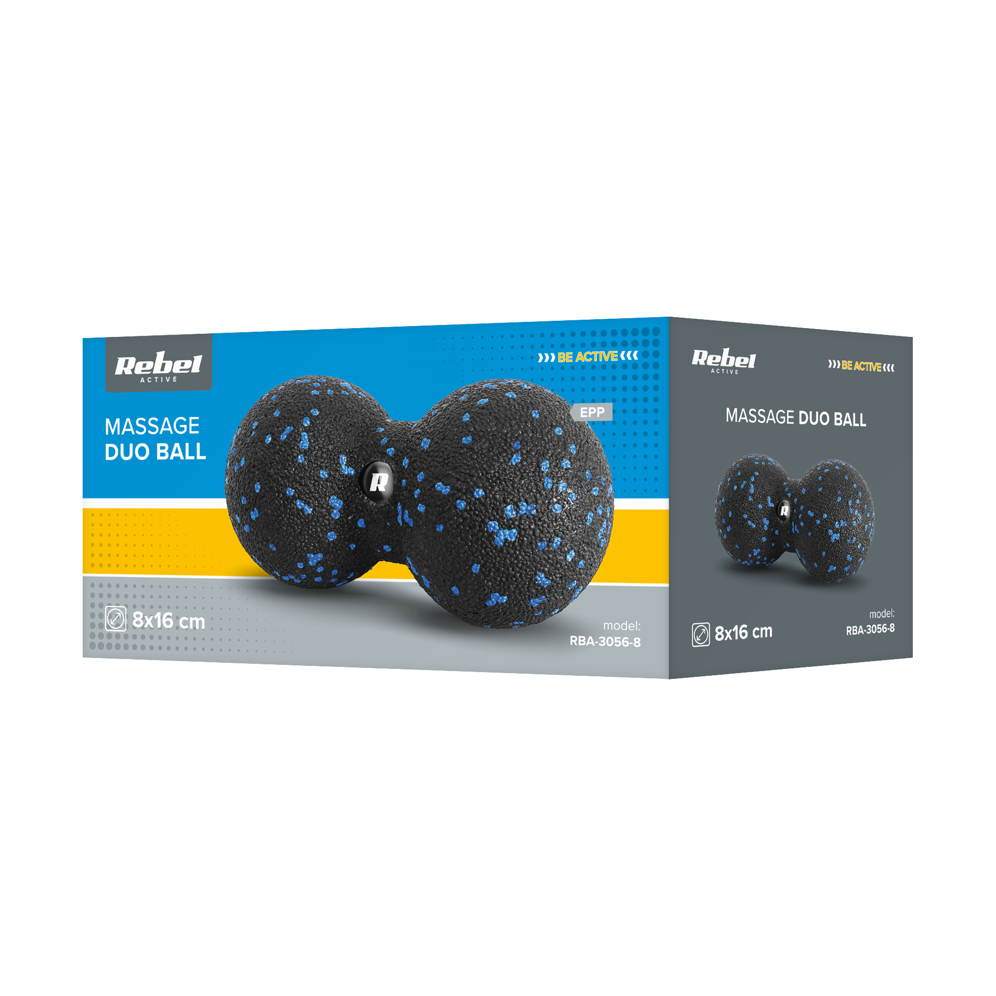 Twarda piłka do masażuDuoball do masażu Rebel Active o średnicy 8 cm wykonana została z wysokiej jakości pianki EPP. Dzięki swojej twardości na poziomie 70 mierzonej na skali Shore’a, zapewnia optymalny poziom wsparcia i komfortu podczas użytkowania.