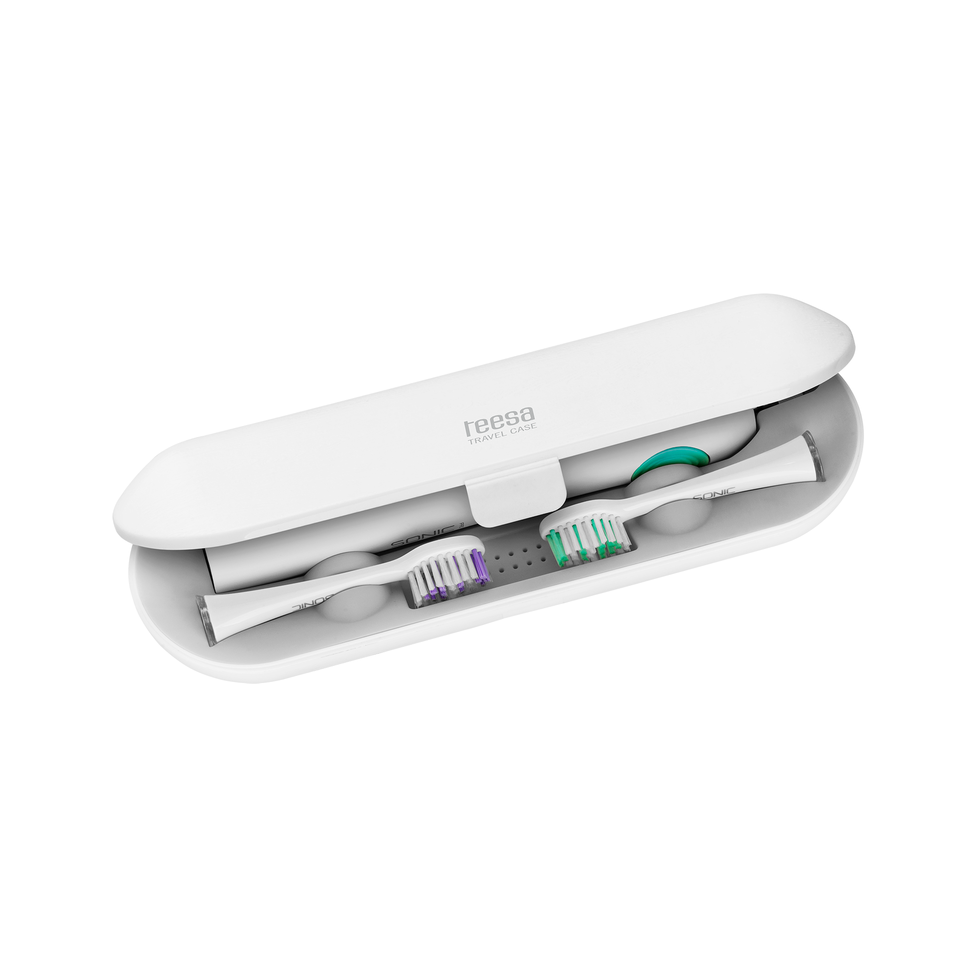 Etui do szczoteczki Teesa Sonic i Sonic PRONowoczesna technologia soniczna zastosowana w szczoteczkach do zębów Teesa Sonic sprawi, że Twój uśmiech zyska nowy blask. Regularne stosowanie szczoteczki sonicznej, zgodnie z zaleceniami stomatologów jest kluczowe, bo dzięki temu można szybko pozbyć się problemów i odpowiednio zadbać o doskonałą kondycję jamy ustnej. Dlatego dla osób, które nie chcą rozstawać się ze swoją szczoteczką do zębów, w ofercie marki Teesa dostępne jest etui podróżne do modelu Sonic i Sonic PRO. To wykonane z solidnego tworzywa akcesorium chroni szczoteczkę i gwarantuje higienę urządzenia w czasie transportu.