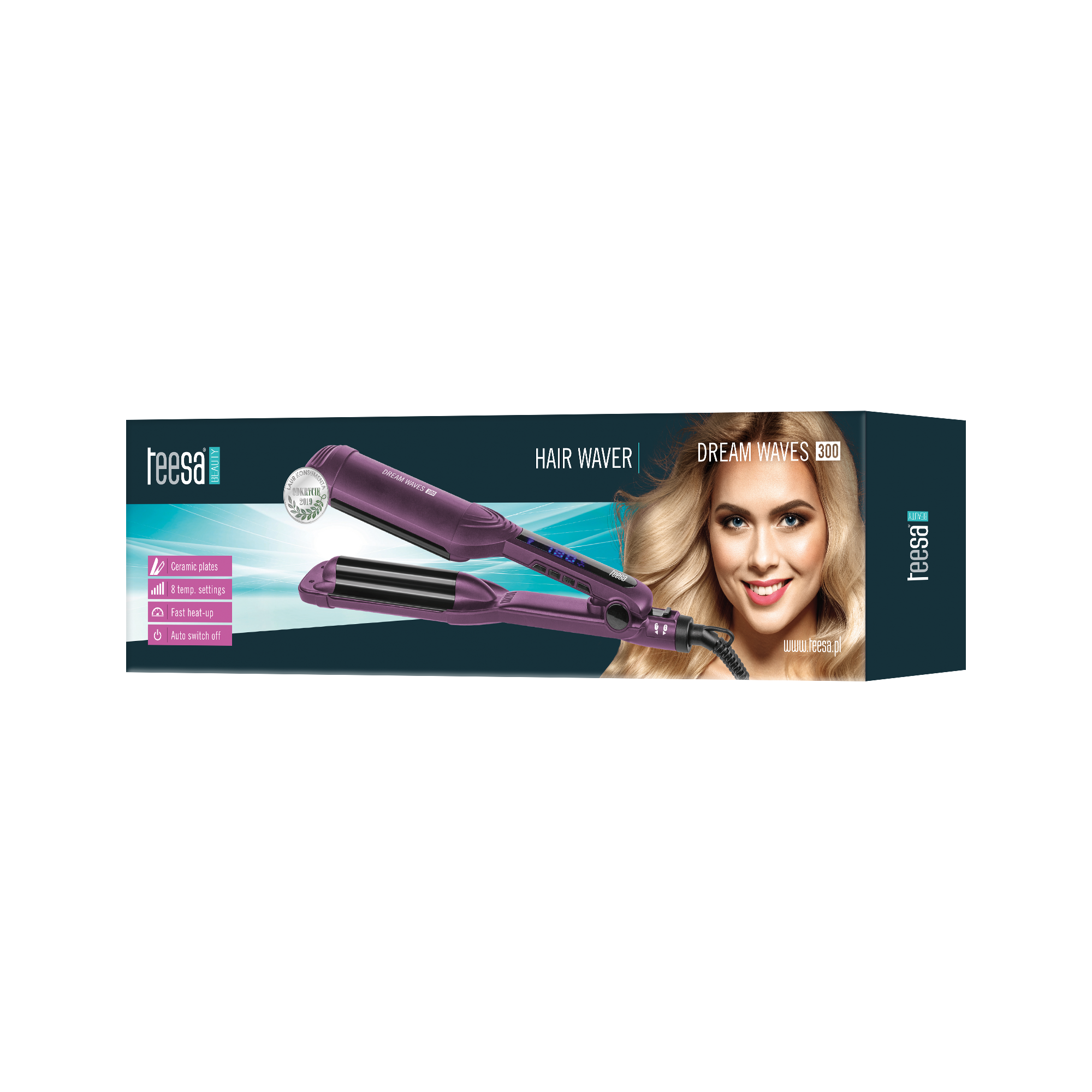 Falownica Teesa Dream Waves 300Zależy Ci na naturalnie wyglądających falach, ale nie możesz zdecydować jaką falownicę do włosów wybrać? Nie zastanawiaj się dłużej i wybierz falownicę z wyświetlaczem Teesa Dream Waves 300! Regulacja temperatury, obrotowy przewód 360° oraz autowyłączanie to tylko niektóre cechy, które sprawiają, że ta falownica do włosów Teesa jest połączeniem funkcjonalności, komfortu użytkowania i bezpieczeństwa.