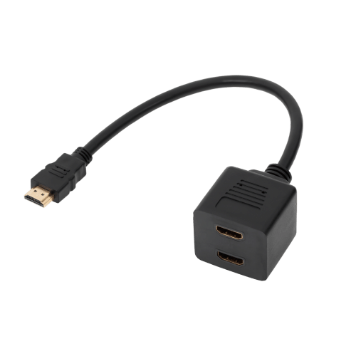 Adaptor HDMI wtyk-2 x gniazdo na kablu 30cmAdapter HDMI wtyk - 2 x gniazdo na kablu 30 cm to idealne rozwiązanie do podłączenia dwóch monitorów lub telewizorów (np. TV) do jednego urządzenia (np. DVD, DVB-T). Dzięki kompaktowej długości kabla, urządzenie jest łatwe do zainstalowania i zajmuje minimalną przestrzeń, zapewniając jednocześnie wygodny sposób rozszerzenia połączenia HDMI.