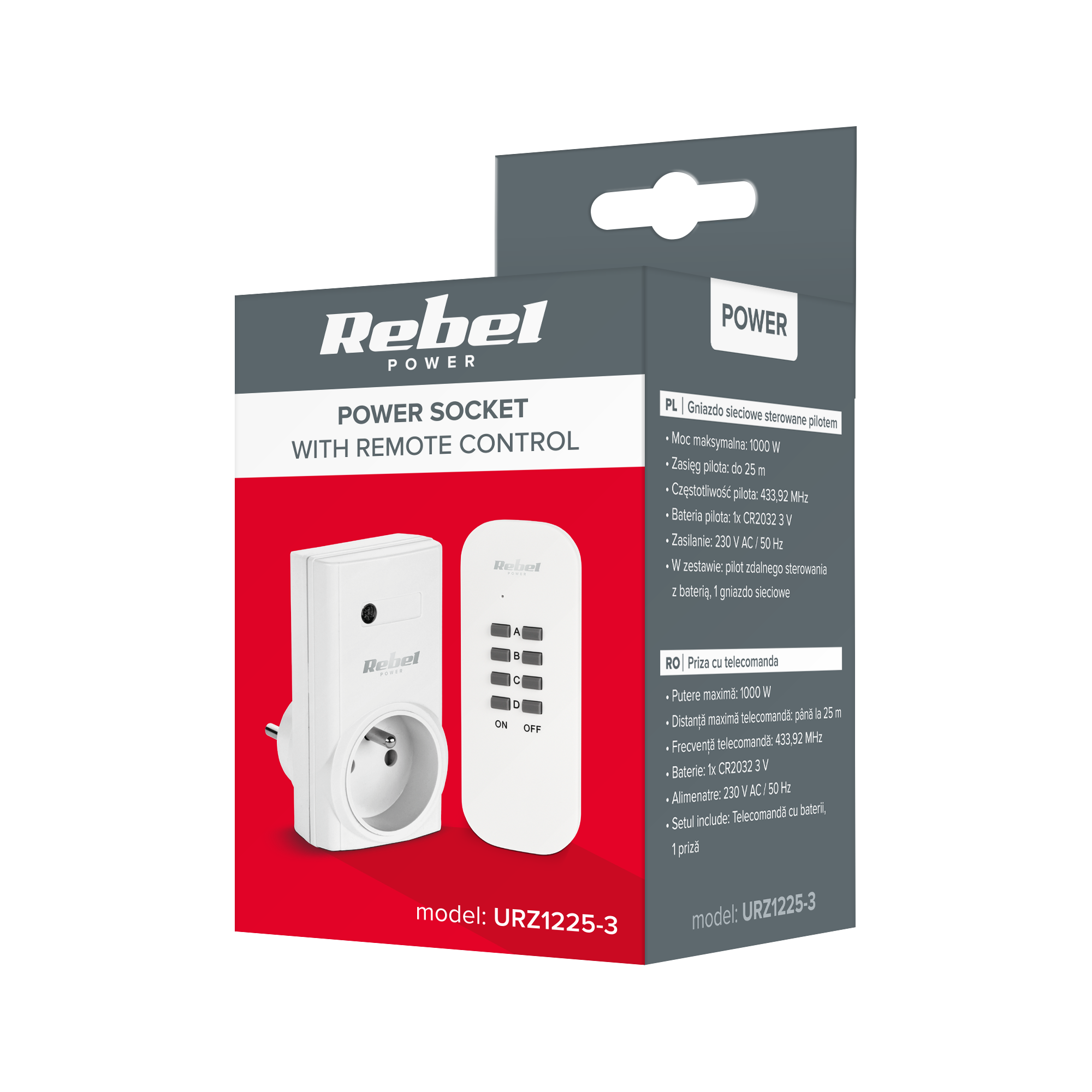 Gniazdo sieciowe Rebel sterowane pilotem URZ1225-3
