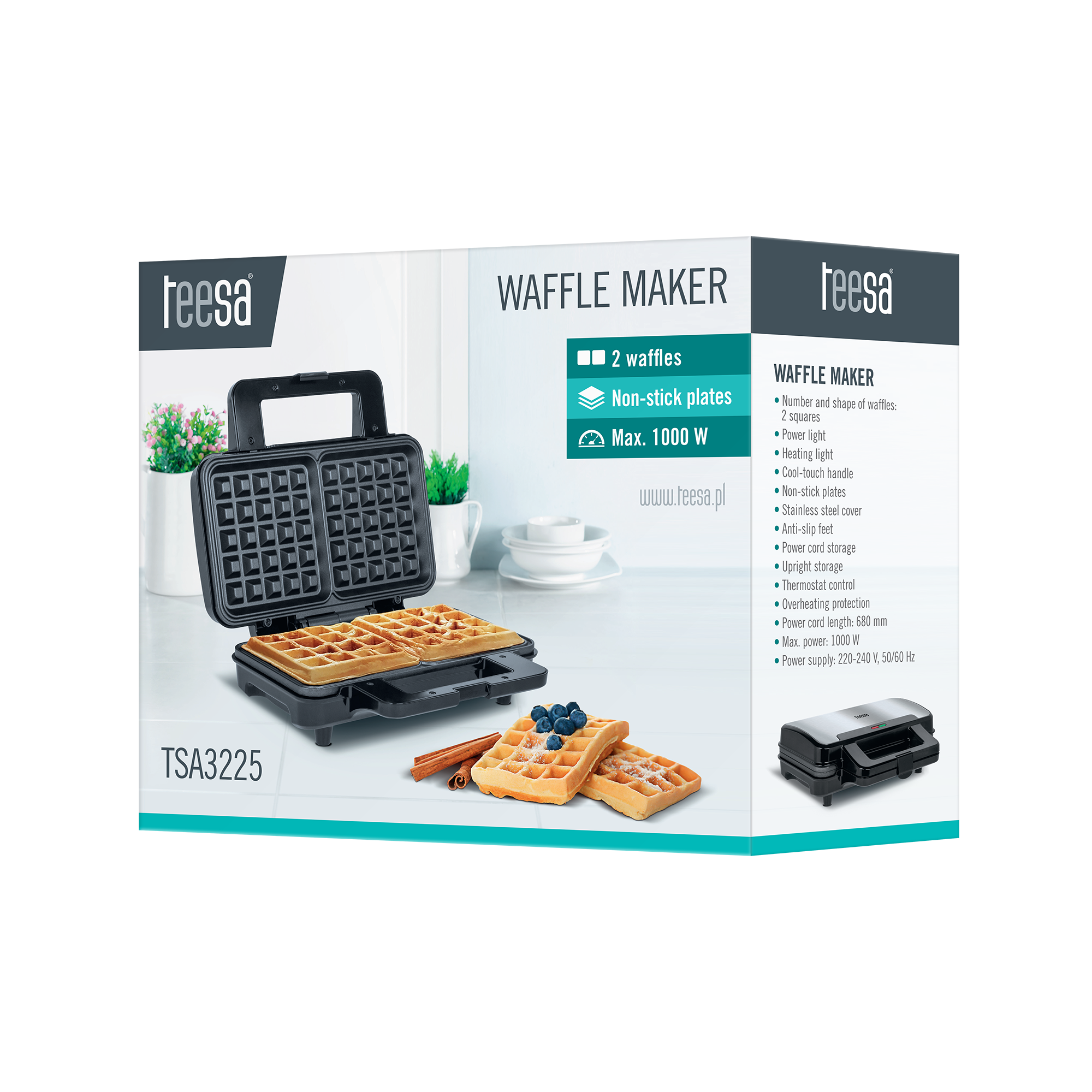Nowoczesny i kompaktowyTeesa to nie tylko wygoda, ale także bezpieczeństwo. Dlatego gofrownica została wyposażona w antypoślizgowe stopki oraz ochronę przed przegrzaniem. Atutem urządzenia jest również jego budowa. Wykonana ze stali nierdzewnej obudowa jest nie tylko wytrzymała, ale także będzie idealnie pasować do wystroju Twojej kuchni. Dodatkowo gofrownica posiada możliwość ustawienia w pionie, dlatego po skończonej pracy z łatwością znajdziesz dla niej miejsce w szafce czy na blacie.