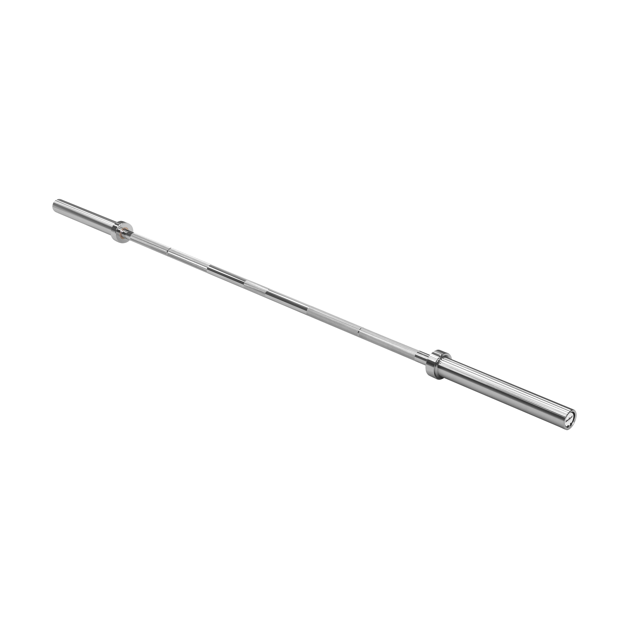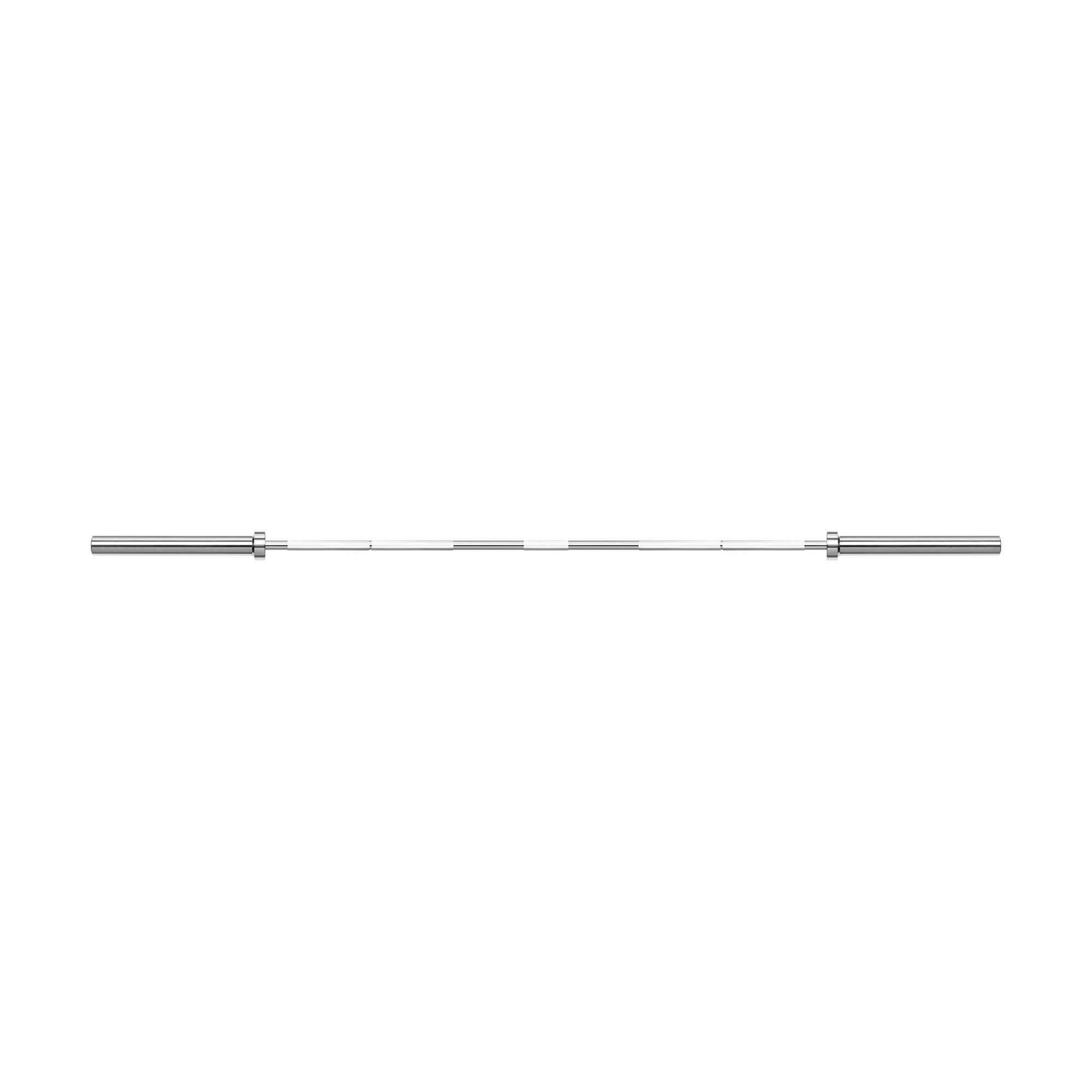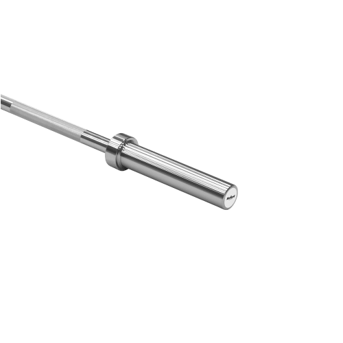 Gryf wykonany jest z wysokiej jakości stali chromowanej, co zapewnia jego trwałość i odporność na korozję. Z długością 220 cm i wagą 20 kg, gryf jest idealny do intensywnych treningów. Posiada podwójne i centralne radełkowanie, które zapewnia pewny i wygodny chwyt, minimalizując ryzyko poślizgu podczas ćwiczeń. Znacznik chwytu ułatwia symetryczne ustawienie rąk, co jest kluczowe dla zachowania prawidłowej techniki.