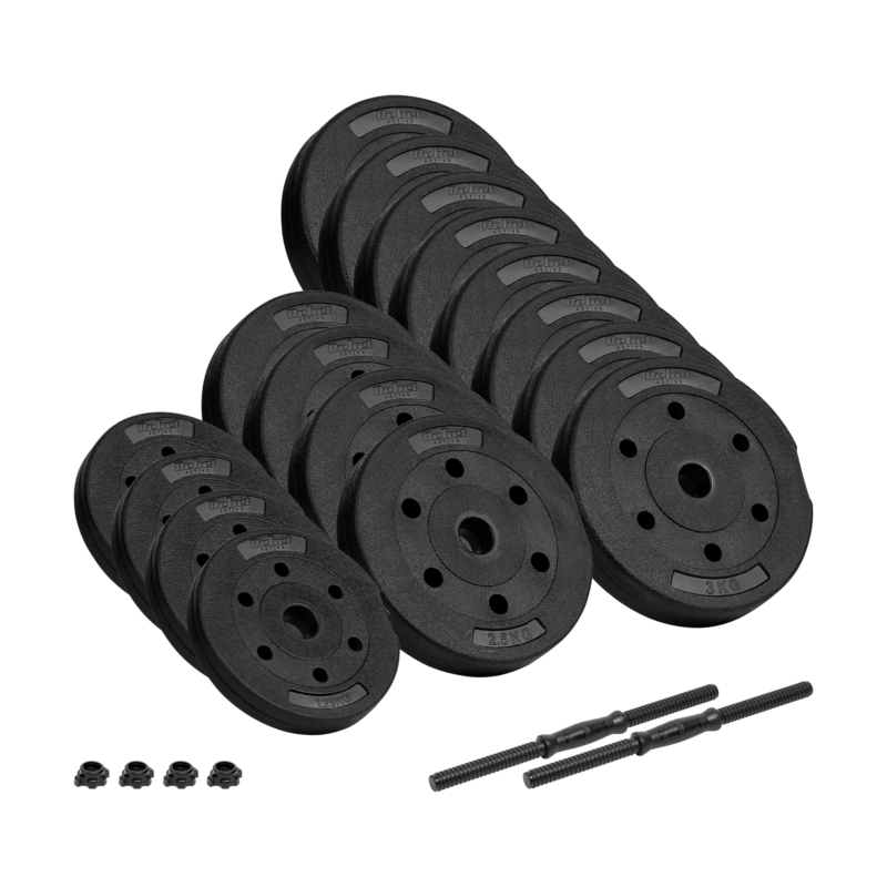Ilość obciążeń w zestawie: 2x1,25 kg, 2x2,5 kg, 4x3 kg