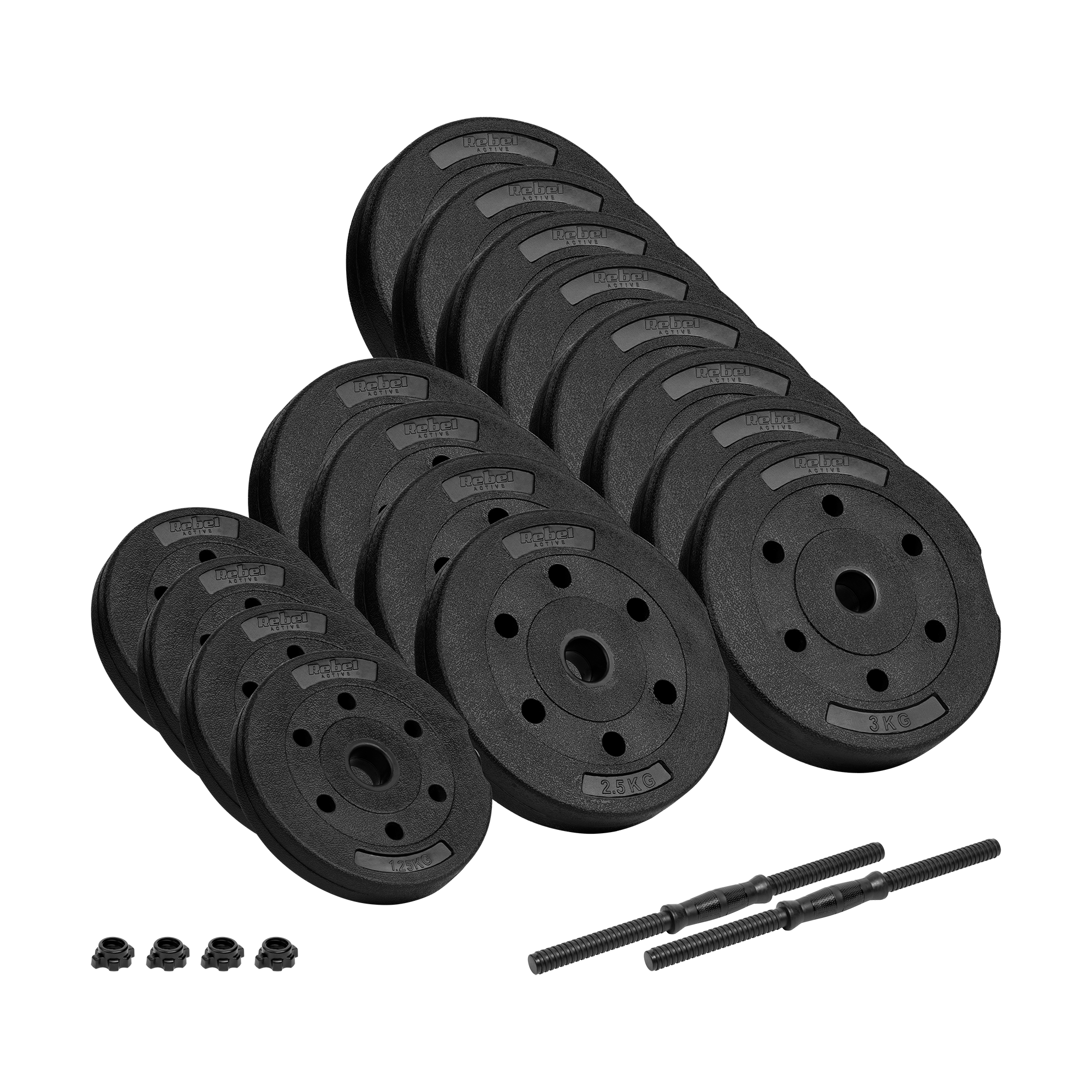 Ćwicz na swoich zasadachZestaw oferuje różne poziomy obciążenia, dzięki czemu możesz dostosować trening do swoich celów i poziomu zaawansowania. Kluczowym elementem zestawu RBA-2328-20 jest gryf, który umożliwia łączenie talerzy wagowych do tworzenia różnych kombinacji obciążeń, zgodnie z preferencjami i poziomem zaawansowania.