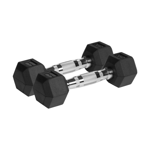 Bezpieczny trening Zestaw hantli to idealny wybór dla osób pragnących wzmocnić swoje ciało i poprawić ogólną kondycję. Dzięki sześciokątnemu kształtowi oraz otaczającej żeliwo gumowej powłoce, hantle HEX nie toczą się po podłożu, co zmniejsza ryzyko kontuzji oraz stanowi dodatkową ochronę podłogi.