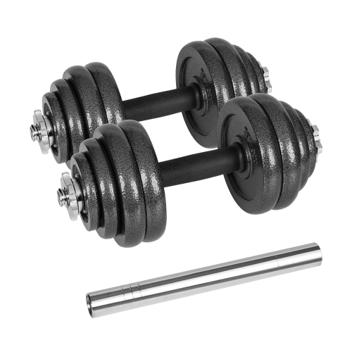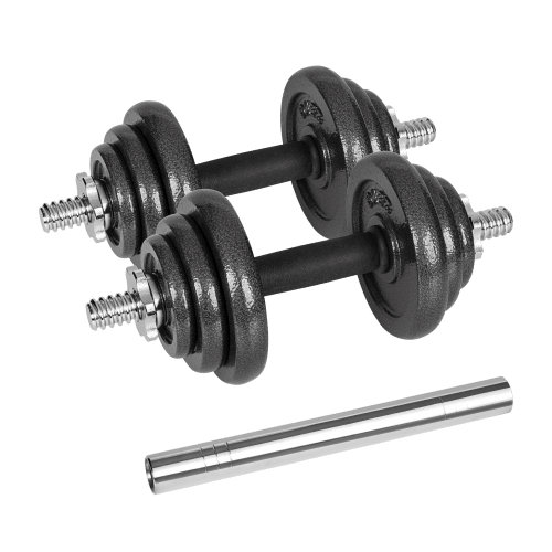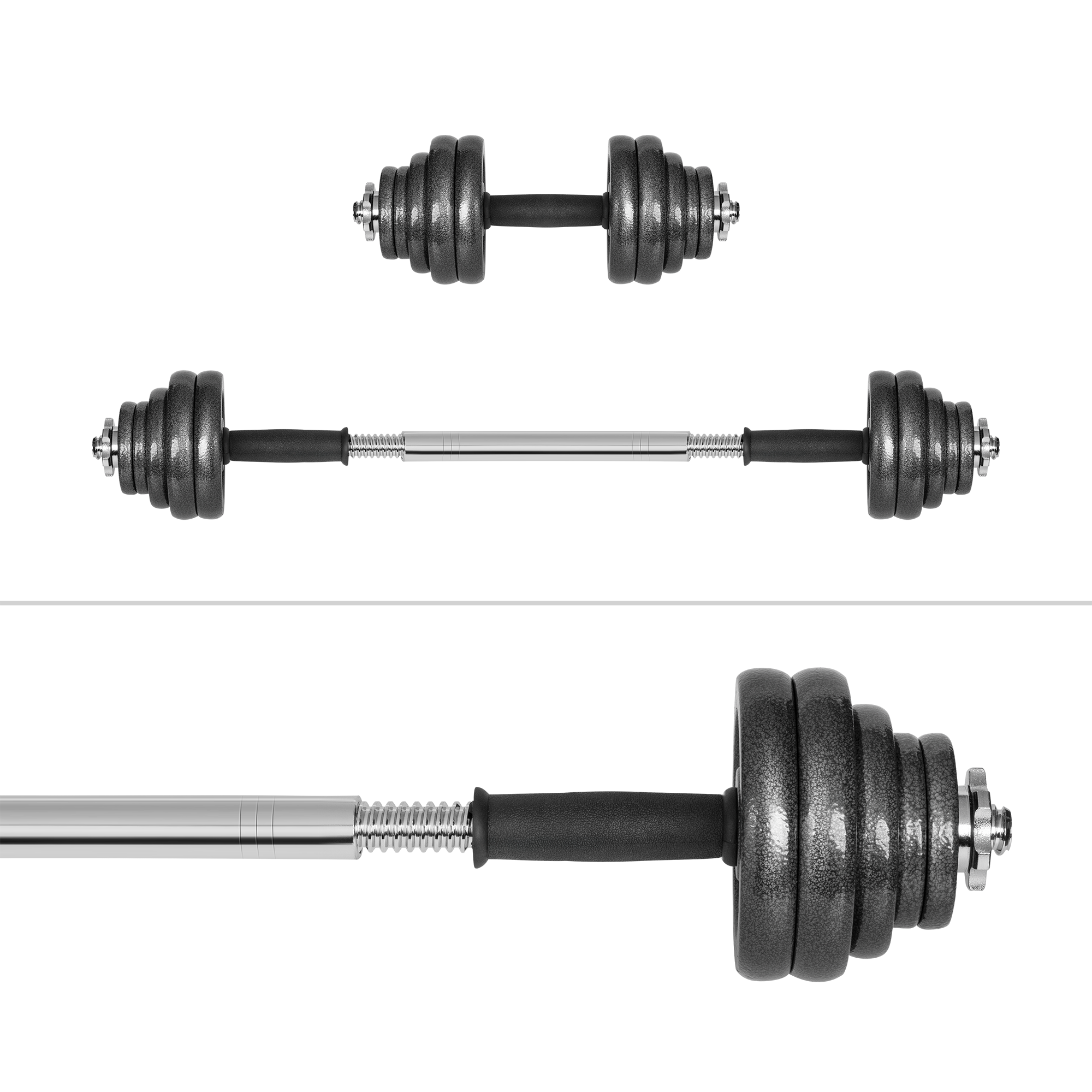 Więcej możliwości Dołączony łącznik pozwala połączyć dwa gryfy w jedną sztangę, co znacząco poszerza zakres ćwiczeń. Dzięki temu w jednym zestawie zyskujesz zarówno hantle, jak i sztangę – idealne rozwiązanie do treningu całego ciała bez potrzeby inwestowania w dodatkowy sprzęt.