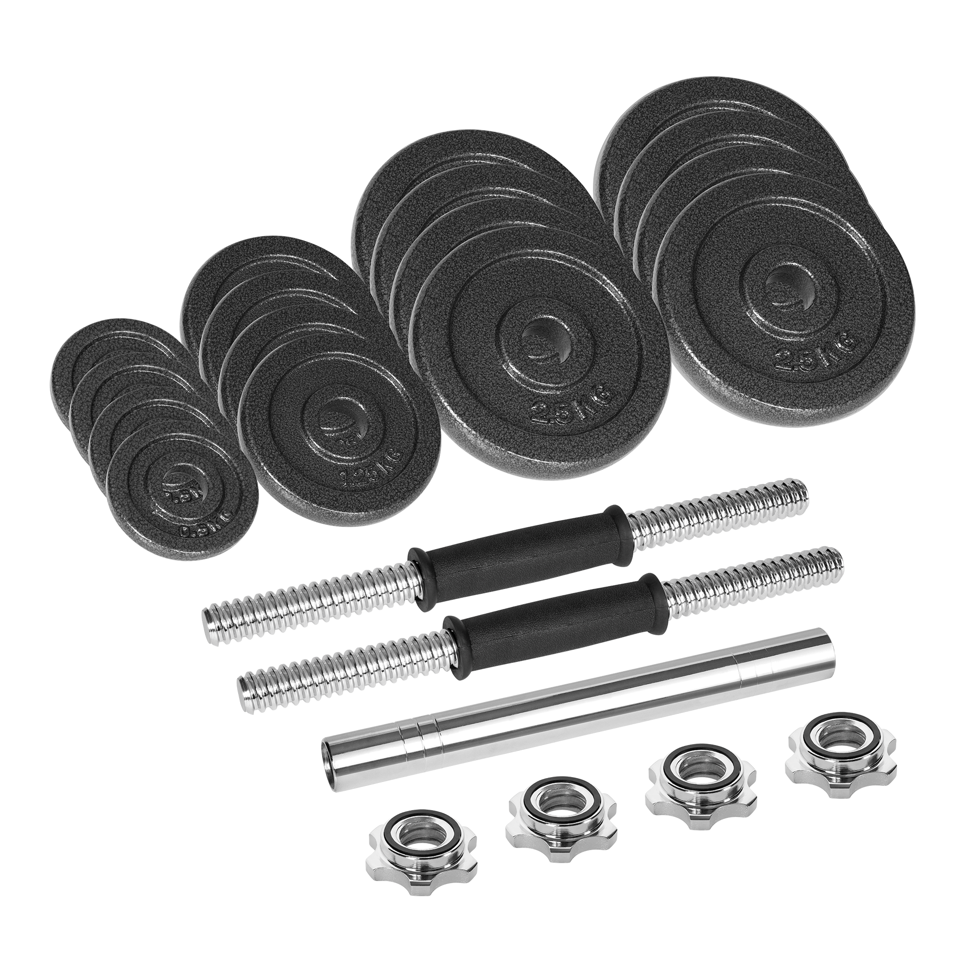 Trenuj po swojemuZestaw pozwala na szybką i wygodną zmianę obciążenia – w komplecie znajduje się aż 16 talerzy o różnych wagach: 0,5 kg, 1,25 kg oraz 2,5 kg. Dzięki temu można stopniowo zwiększać trudność ćwiczeń, idealnie dopasowując ciężar do własnych możliwości. To świetne rozwiązanie zarówno dla początkujących, jak i zaawansowanych użytkowników.