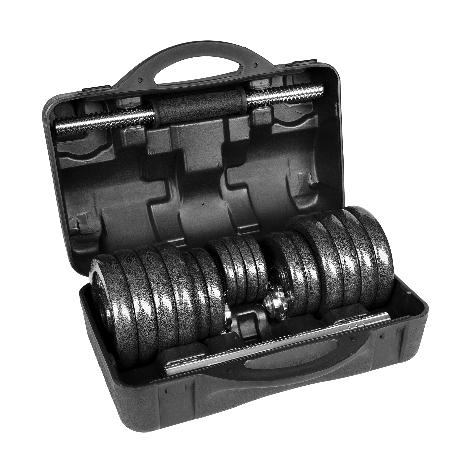 Walizka pełna mocyCały zestaw zapakowany jest w solidną, zamykaną walizkę, która ułatwia przechowywanie i transport. Każdy element ma swoje miejsce, co zapobiega ich przemieszczaniu się. Dzięki kompaktowym wymiarom walizki, hantle nie zajmują dużo przestrzeni – doskonale sprawdzą się w domowych siłowniach, małych mieszkaniach czy podczas treningów w terenie.