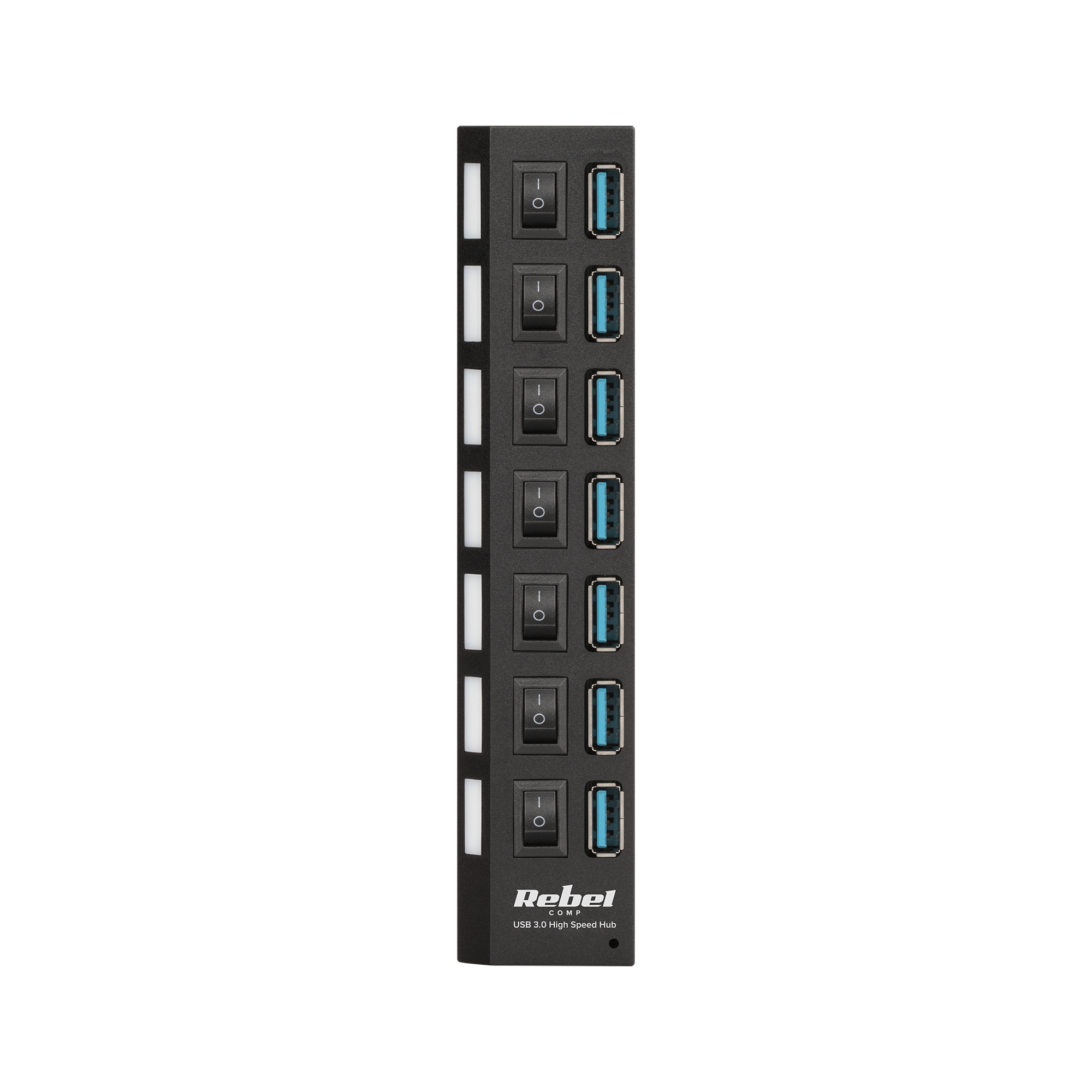 HUB USB 3.0 7-portowy RebelRozbuduj możliwości swojego komputera lub laptopa z HUB-em USB 3.0 Rebel, który oferuje 7 dodatkowych portów USB. Dzięki interfejsowi USB 3.0, urządzenie zapewnia szybki transfer danych do 5 Gb/s, co pozwala na błyskawiczne przesyłanie plików i płynne działanie podłączonych akcesoriów.