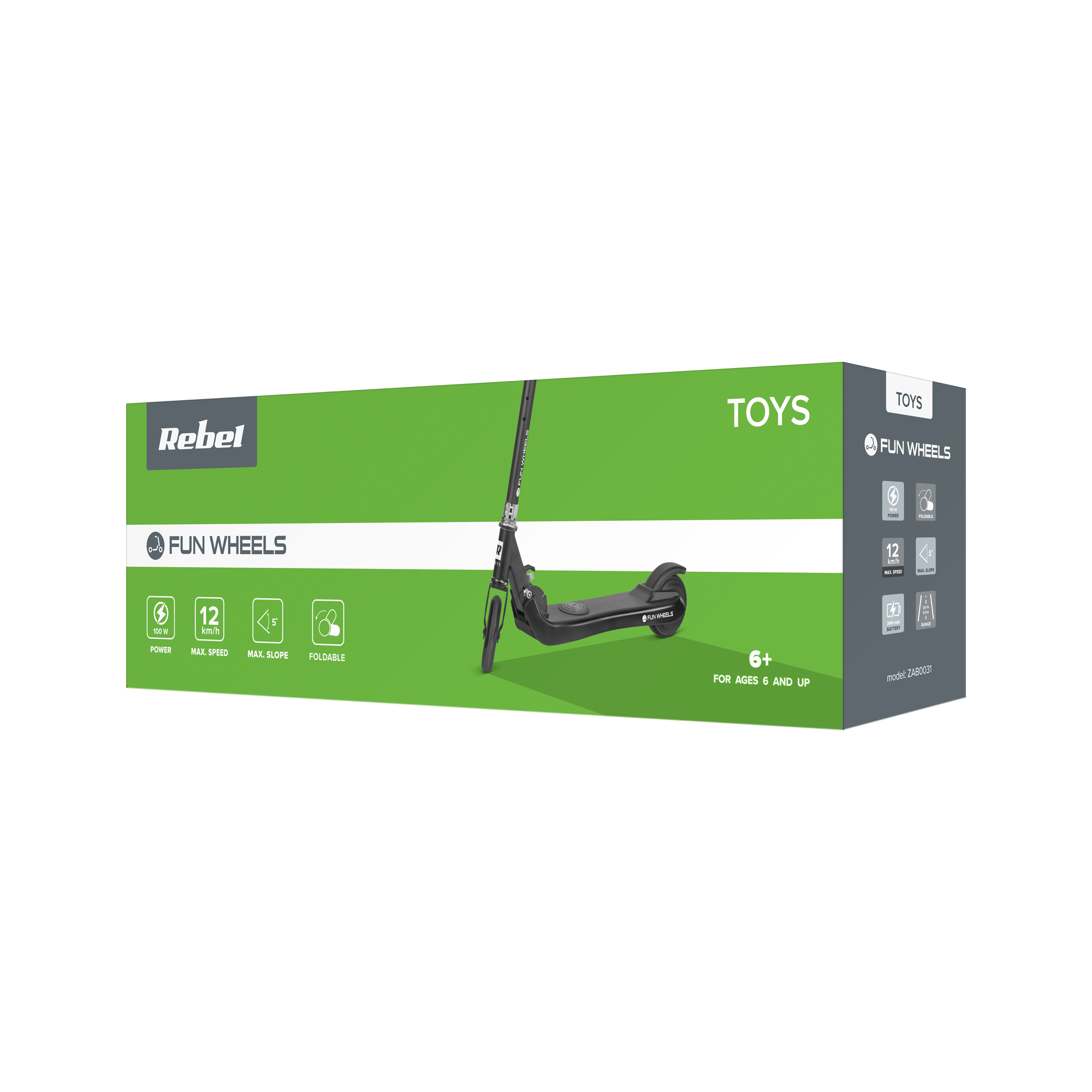 Hulajnoga elektryczna dla dzieci Fun WheelsTwojemu dziecku marzy się hulajnoga elektryczna, ale Ty nie jesteś przekonany do pomysłu? Idealnym wyborem na początek będzie model Rebel Fun Wheels, z którego mogą korzystać dzieci od 6. roku życia. Maksymalna prędkość pojazdu to 12 km/h. To wystarczająco dużo, aby zapewnić dużo frajdy z jazdy, a jednocześnie zadbać o bezpieczeństwo. Warto wspomnieć, że maksymalne obciążenie Fun Wheels to 50 kg, dlatego hulajnoga ta posłuży przez długi czas – także starszym dzieciom.