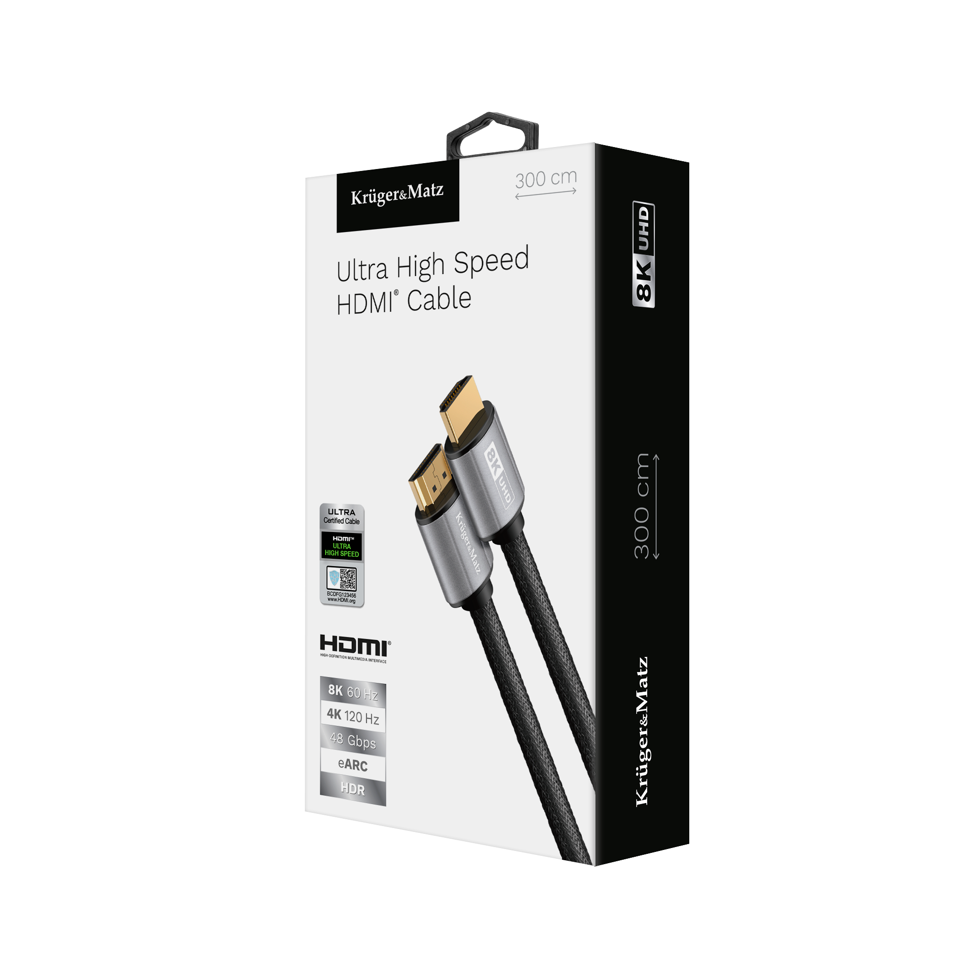 Dbałość o detaleTeraz dostrzeżesz każdy szczegół! Przewód HDMI 2.1 Kruger&Matz umożliwia wyświetlanie obrazu w rozdzielczościach 8K przy 60 Hz oraz 4K przy 120 Hz. Przejdź na zupełnie inny poziom wrażeń podczas oglądania filmów i grania w gry na konsoli.