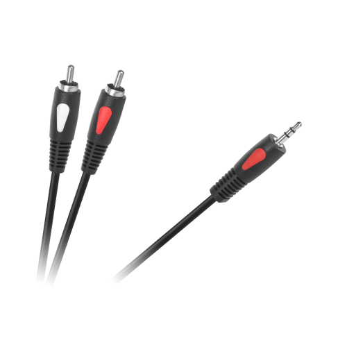 Kabel wtyk jack 3.5 - 2RCAKabel marki Cabletech przeznaczony jest do przesyłania sygnału audio pomiędzy urządzeniami wyposażonymi w złącza jack i 2x RCA. Dzięki wykorzystaniu wysokiej jakości materiałów, zapewnia on wysoką jakość przewodzenia, bez zakłóceń. Kabel umożliwi przesyłanie dźwięku np. między smartfonem, czy komputerem, a wzmacniaczem. Kable z tej serii charakteryzuje wysoka jakość wykonania oraz zgodność z normami określonymi w polskich i międzynarodowych standardach.