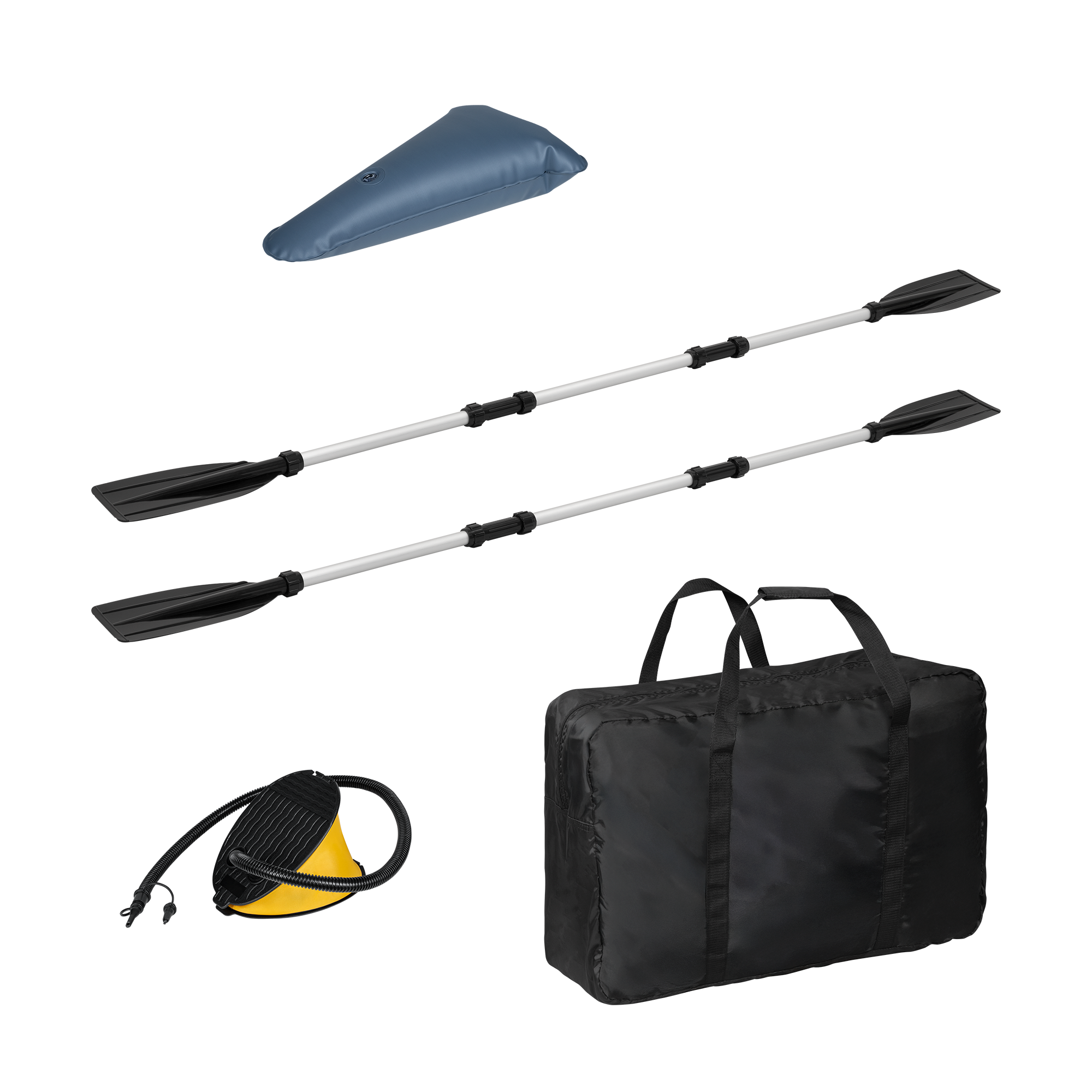 W zestawie: 2 x wiosło, 2 x oparcie, 1 x pompowany podnóżek, pompka nożna, torba do przenoszenia, miarka, łatka naprawcza