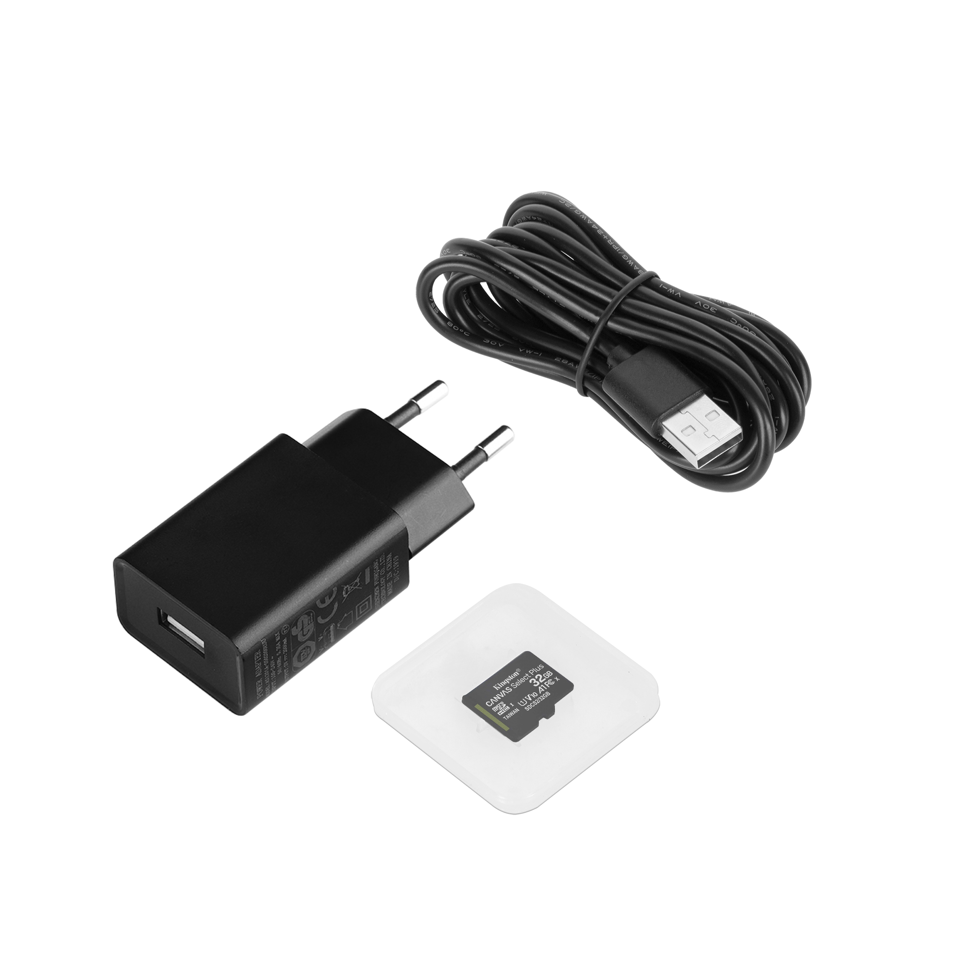 Bogaty Zestaw AkcesoriówKamera jest dostarczana z ładowarką USB (5V, 1,5A), przewodem USB typu C oraz kartą micro SD, co umożliwia łatwe przechowywanie i transfer danych. Certyfikaty RoHS i CE zapewniają zgodność z europejskimi normami bezpieczeństwa.