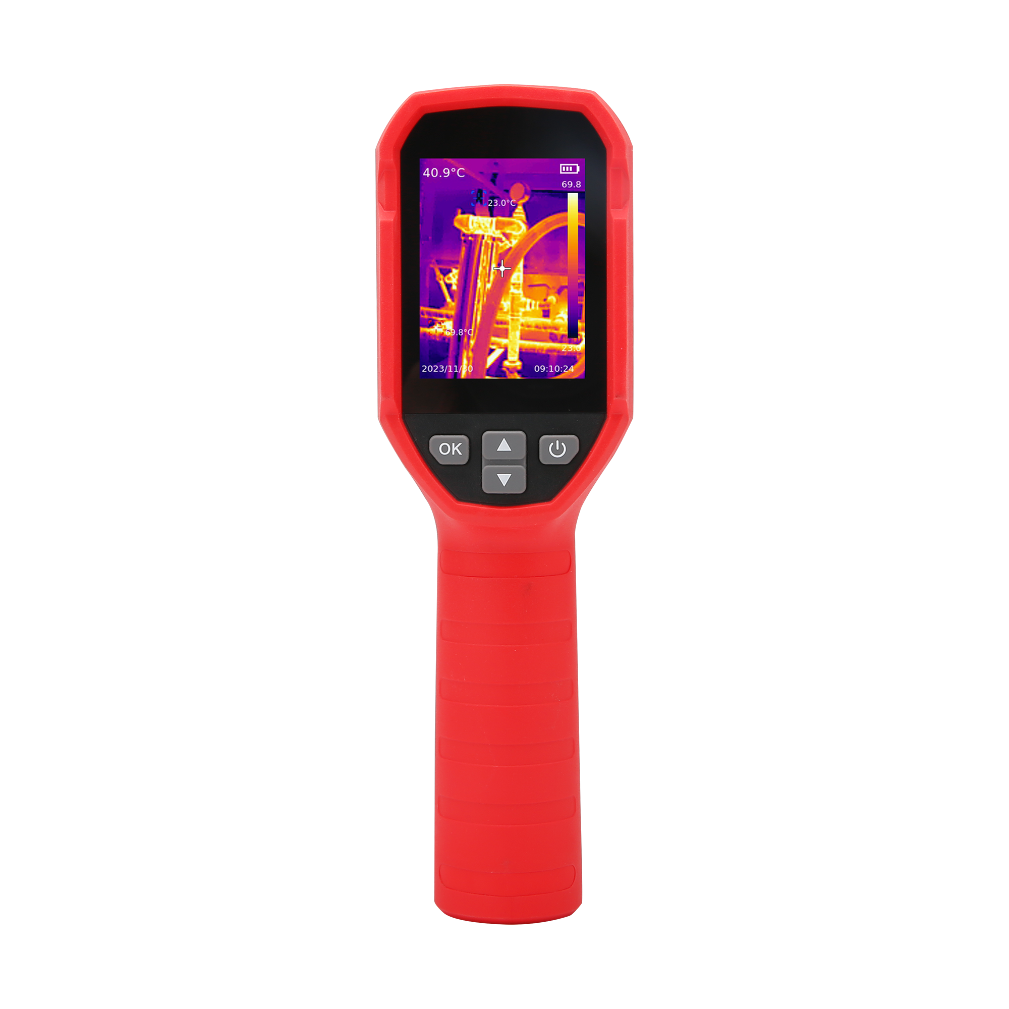 Ergonomiczna konstrukcja i funkcje użytkoweUTi716S jest wyposażona w 2,4-calowy wyświetlacz TFT LCD o rozdzielczości 320x240 pikseli, który zapewnia wyraźny i szczegółowy obraz. Kamera oferuje kilka trybów pracy, w tym tryb termowizyjny oraz tryb mieszany, co pozwala na dostosowanie obrazu do specyficznych potrzeb. Dzięki 7 różnym paletom kolorów, użytkownik może łatwo zidentyfikować obszary o różnych temperaturach. Urządzenie zapisuje obrazy w formacie JPG na karcie microSD, co ułatwia późniejszą analizę i dokumentację wyników.