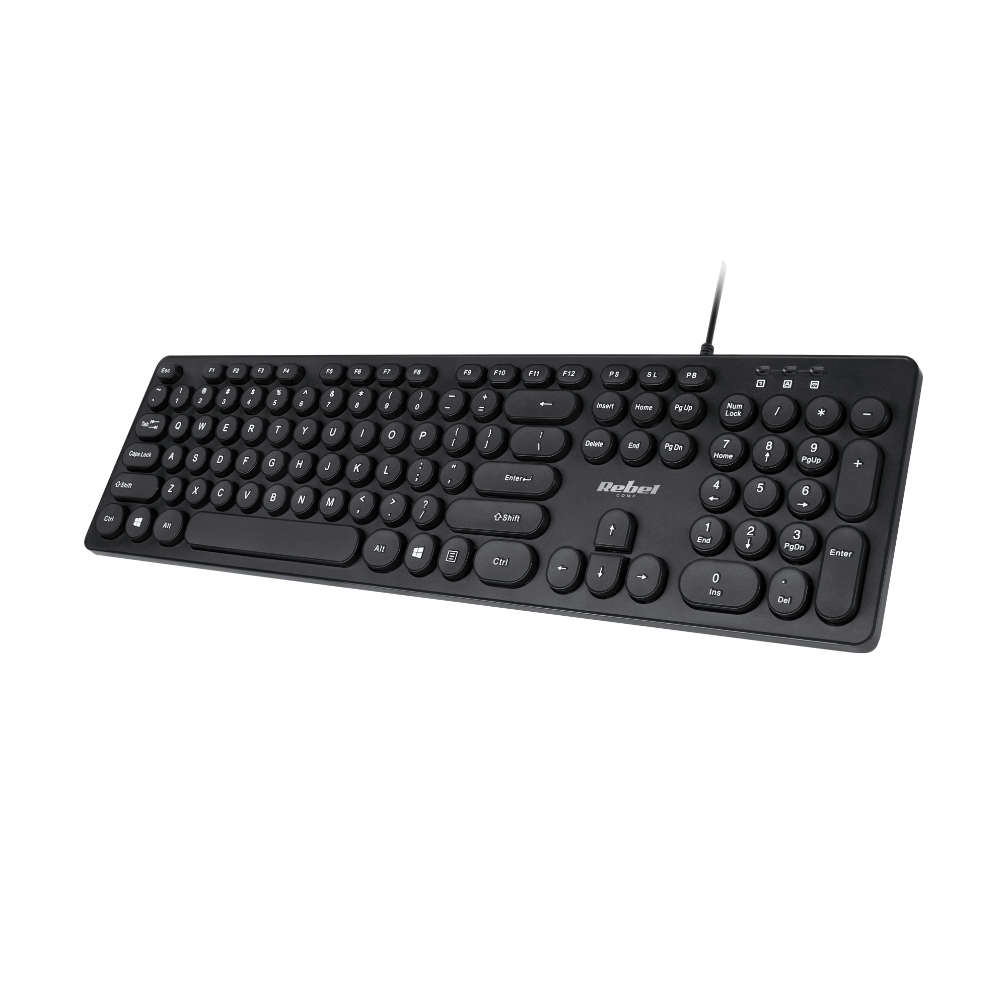 Klawiatura przewodowa Rebel WDK100Klawiatura przewodowa WDK 100 z serii Rebel Comp to doskonały wybór dla użytkowników domowych, biurowych i uczniów. Kompaktowa konstrukcja, cichy mechanizm klawiszy oraz niezawodne połączenie USB sprawiają, że świetnie sprawdza się zarówno przy dłuższym pisaniu, jak i codziennym użytkowaniu.