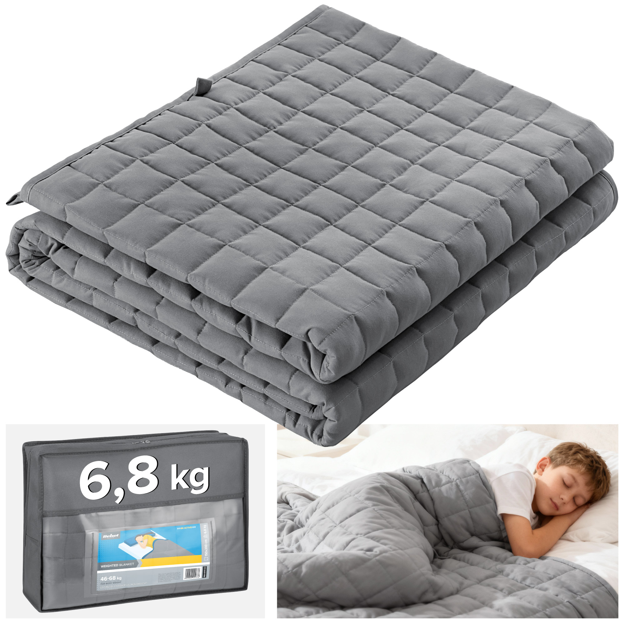 Kołdra obciążeniowa dla dzieci i dorosłych Rebel Active, 6,8 kgKołdra obciążeniowa to coś więcej niż ciężka kołdra – to sposób na spokojniejszy sen, ukojenie po stresującym dniu i przyjemne wyciszenie, kiedy ciało domaga się odpoczynku. Jej działanie przypomina delikatne, stabilizujące przytulenie, dlatego świetnie sprawdzi się zarówno u dorosłych, jak i w wersji jako kołdra obciążeniowa dla dziecka. Idealna, gdy potrzebujesz chwili tylko dla siebie.
