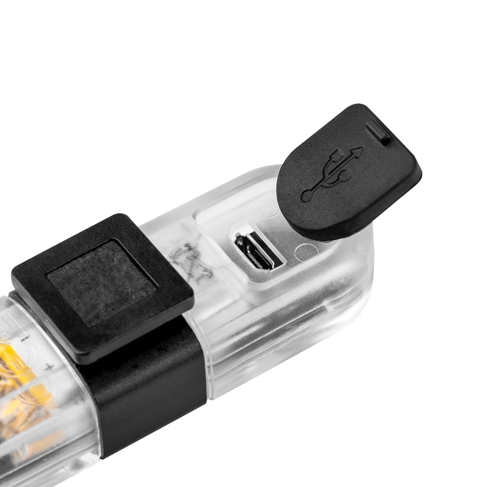 Lampka rowerowa tylna przednia LED USB 2 szt RebelObie lampy, przednia i tylna, są wyposażone w 36 żarówek LED. Lampa przednia emituje strumień świetlny o wartości 70 lumenów, podczas gdy lampa tylna zapewnia 19 lumenów. Kolor światła to zimny biały dla lampy przedniej i czerwony dla lampy tylnej.