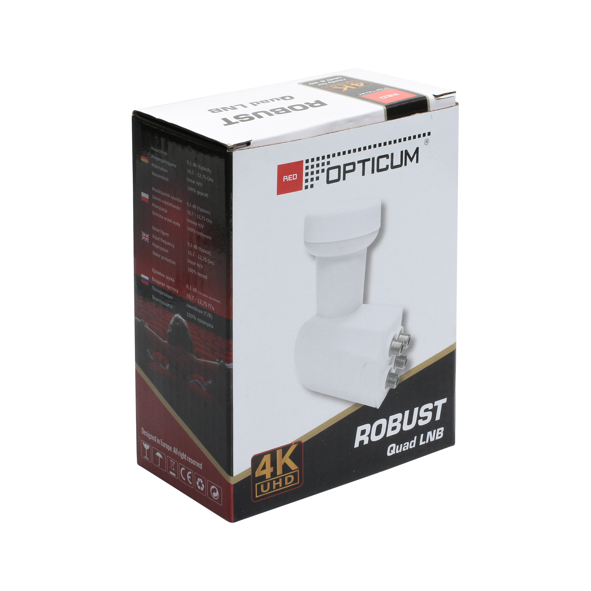 | Content | Konwerter satelitarny OPTICUM ROBUST typu Quad charakteryzuje się bardzo niskim współczynnikiem szumów równym 0,1dB, co stawia go w ścisłej czołówce