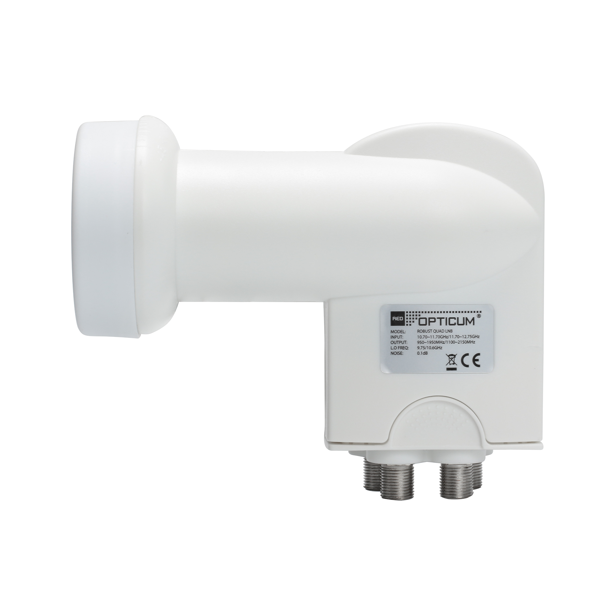 Konwerter satelitarny OPTICUM ROBUST typu Quad charakteryzuje się bardzo niskim współczynnikiem szumów równym 0,1dB, co stawia go w ścisłej czołówce