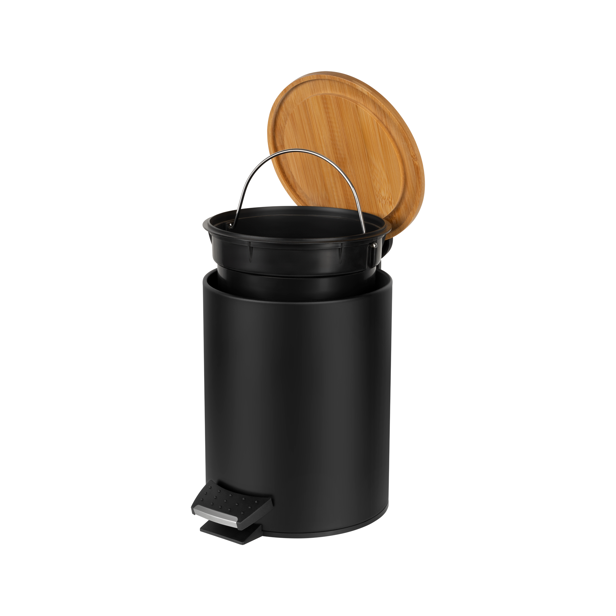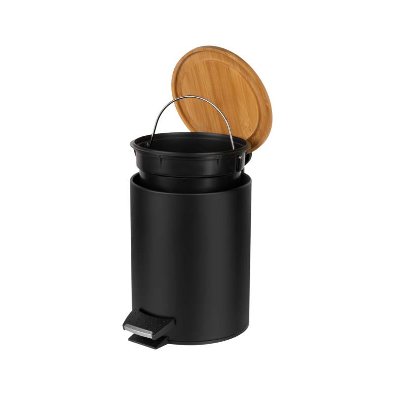 Funkcjonalny i stylowyZapomnij o kompromisach! Kosz na śmieci do łazienki powinien spełniać Twoje oczekiwania nie tylko pod względem użytkowym, ale także estetycznym. Czarna, matowa obudowa kosza Teesa została wykonana z żelaza malowanego proszkowo, co w połączeniu z bambusową pokrywą tworzy stylowe akcesorium, które doskonale wkomponuje się w nowoczesne wnętrza łazienek. Co ważne, nie musisz martwić się, że żelazna obudowa pozostawi zarysowania na podłodze. Kosz na śmieci Teesa posiada podstawę z tworzywa sztucznego, która zapobiegnie rysowaniu powierzchni.