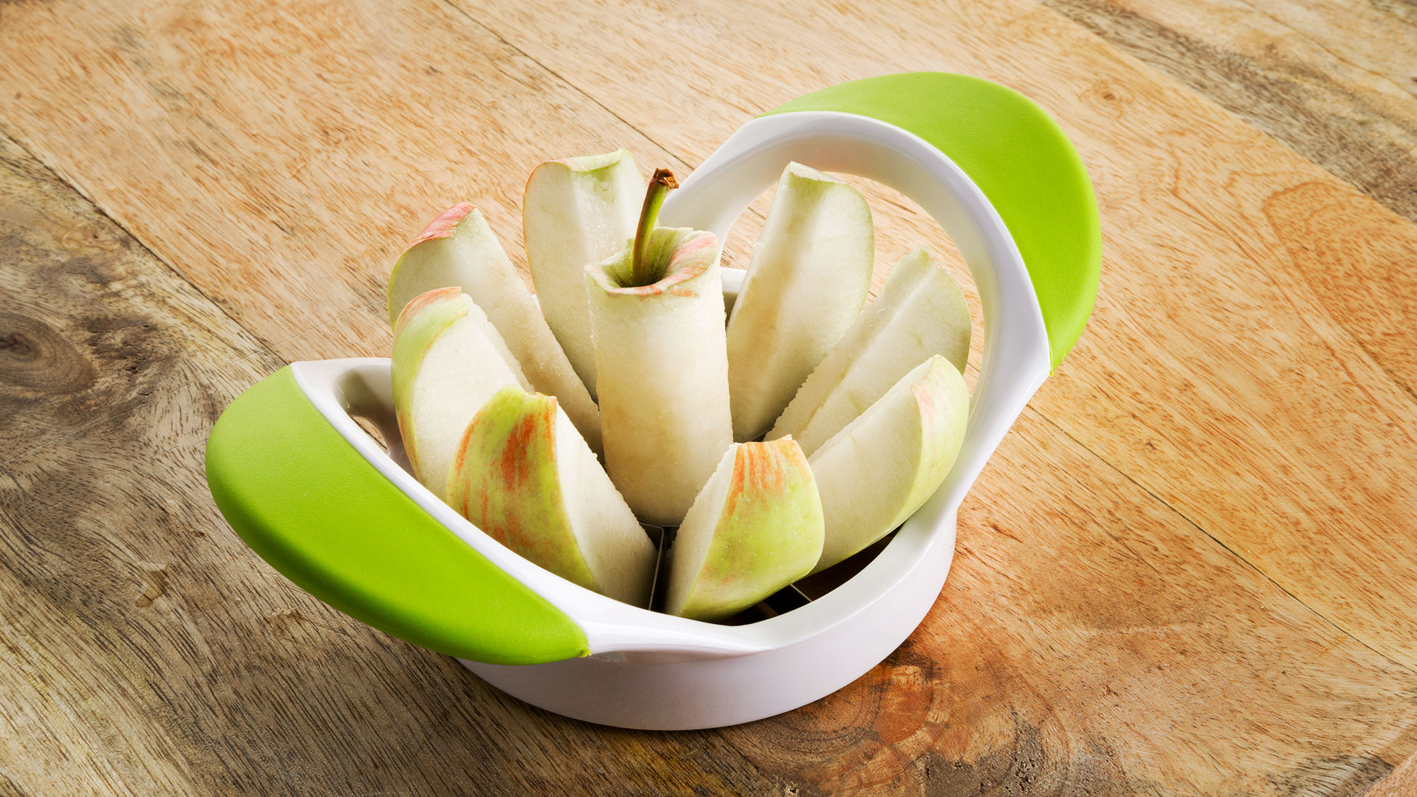Krajalnica do jabłekZależy Ci na szybkim i równym pokrojeniu jabłek? Z pewnością przypadnie Ci do gustu krajalnica Teesa, dzięki której, nie tylko podzielisz owoc na 8 równych kawałków, ale także wytniesz gniazdo nasienne.