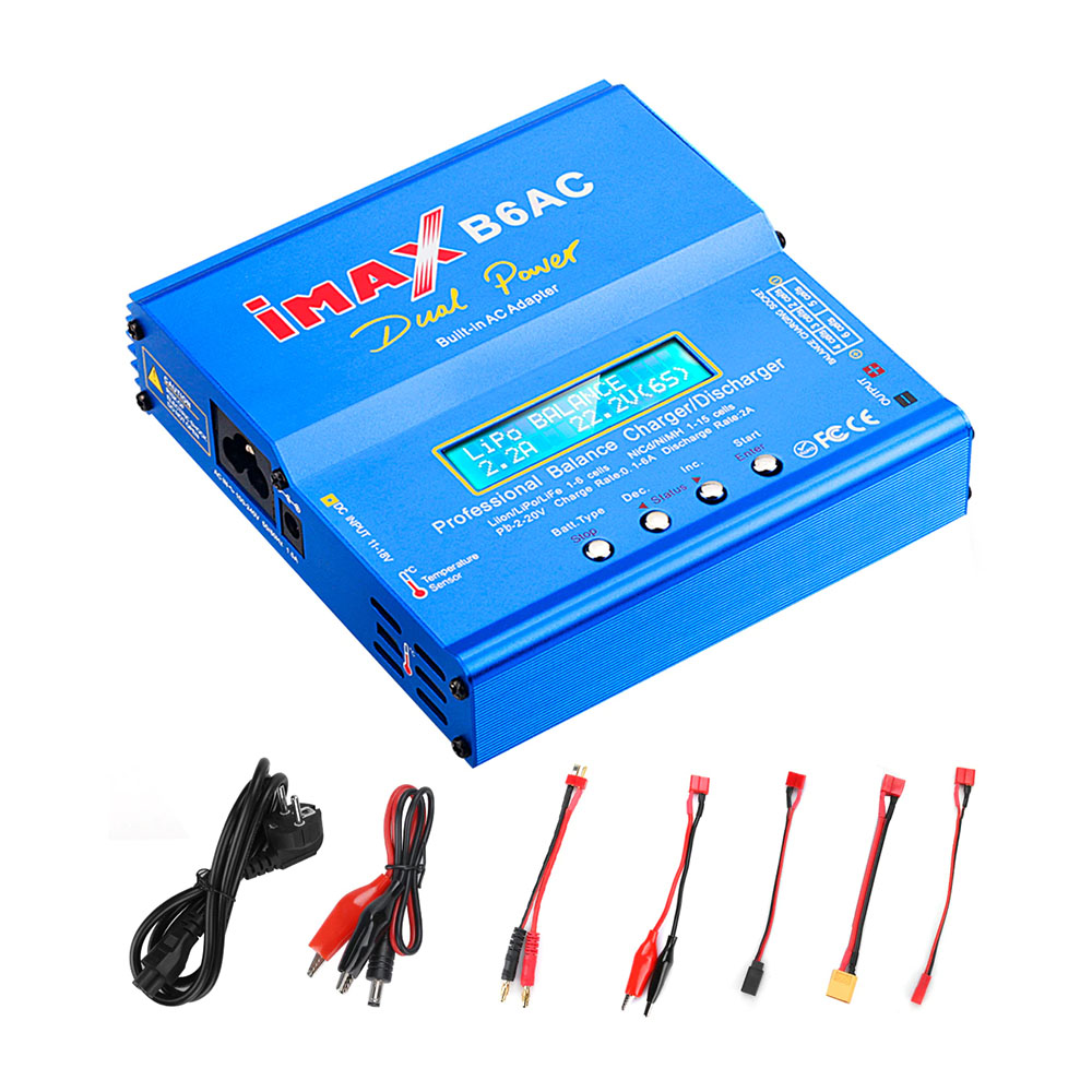 Ładowarka Imax B6AC posiada wbudowany zasilacz, dzięki czemu może być zasilana bezpośrednio z sieci 230V AC. Posiada również wejście dla zasilacza 11-18V DC dzięki czemu możliwe jest użycie zewnętrznego zasilacza lub podłączenie do akumulatora samochodowego.