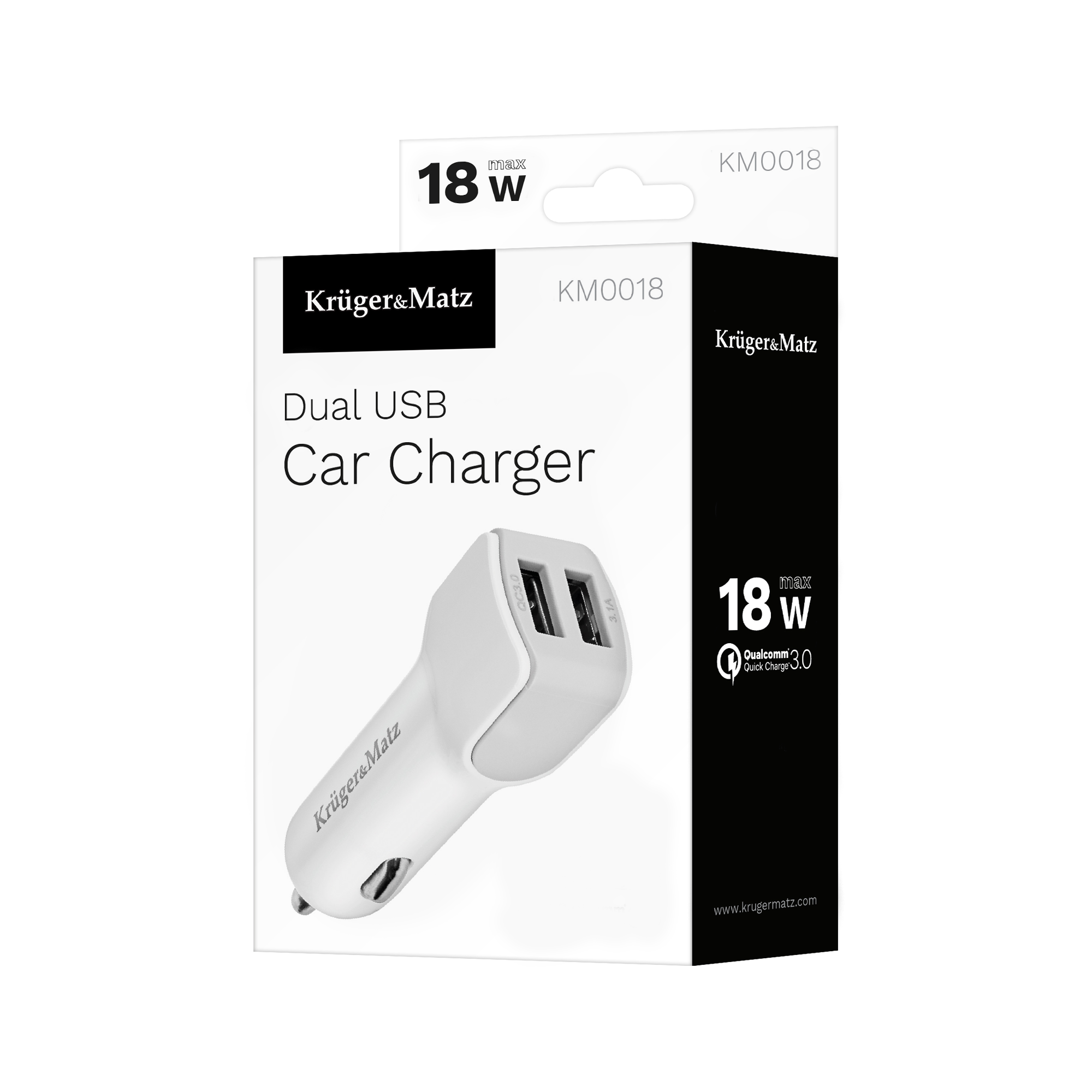 Ładowarka samochodowaChcesz mieć pewność, że Twoje urządzenia są zawsze gotowe do działania? Ładowarka samochodowa Kruger&Matz 2xUSB 3000 mA z funkcją Quick Charge 3.0 zapewnia ekspresowe uzupełnienie energii, eliminując długie oczekiwanie. Dzięki dwóm portom USB, możesz jednocześnie ładować dwa urządzenia – idealne rozwiązanie dla osób z wieloma gadżetami.