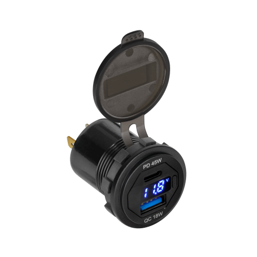 Ładowarka samochodowa USB+USB typu C z funckją Quick Charge i Power DeliveryŁadowarka samochodowa USB+USB typu C umożliwia szybkie i wygodne ładowanie urządzeń mobilnych w samochodzie. Została zaprojektowana z myślą o łatwej instalacji montażowej i zapewnia szybkie ładowanie dwóch urządzeń jednocześnie, co jest idealne w trakcie podróży.