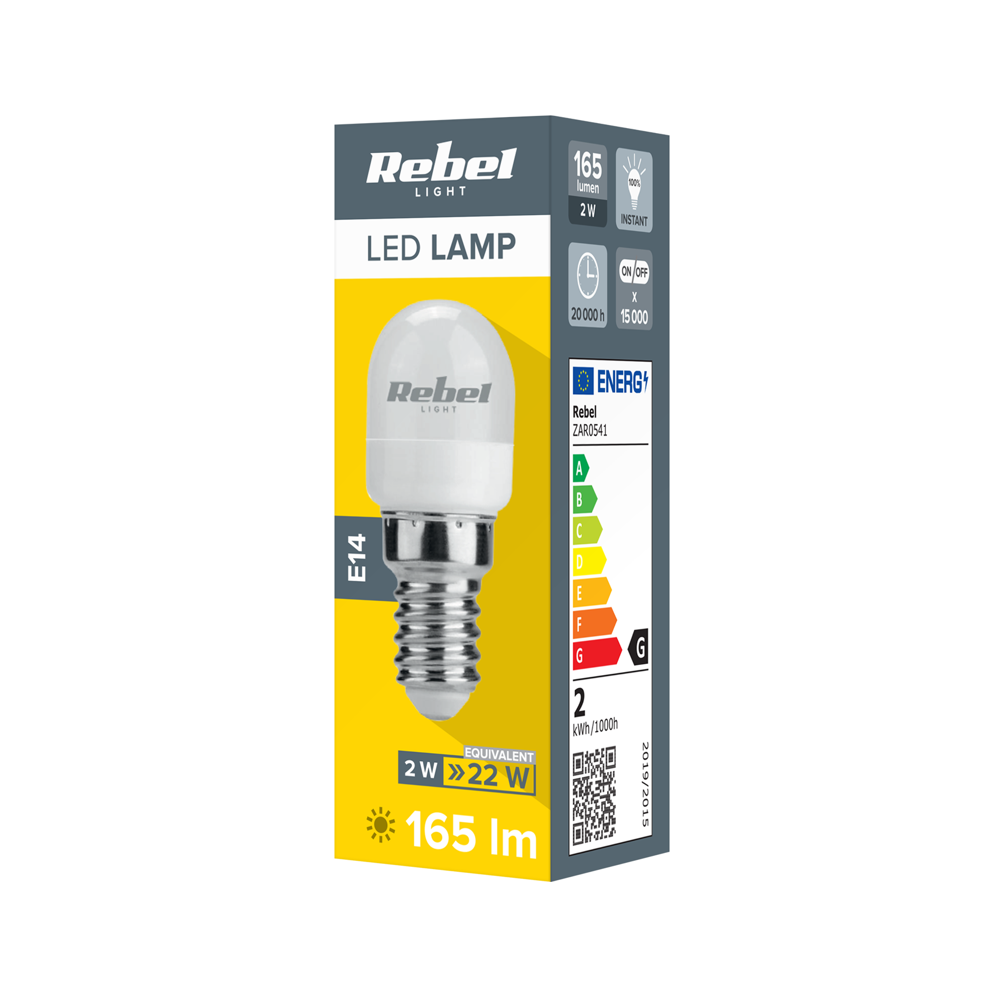 Efektywność i oszczędność energiiLampa generuje strumień świetlny o mocy 165 lm, co odpowiada tradycyjnej żarówce o mocy 22W, przy znacznie mniejszym zużyciu energii. Szeroki kąt świecenia 360° gwarantuje równomierne rozprowadzenie światła, co jest szczególnie ważne w małych, zamkniętych przestrzeniach, takich jak wnętrze lodówki.