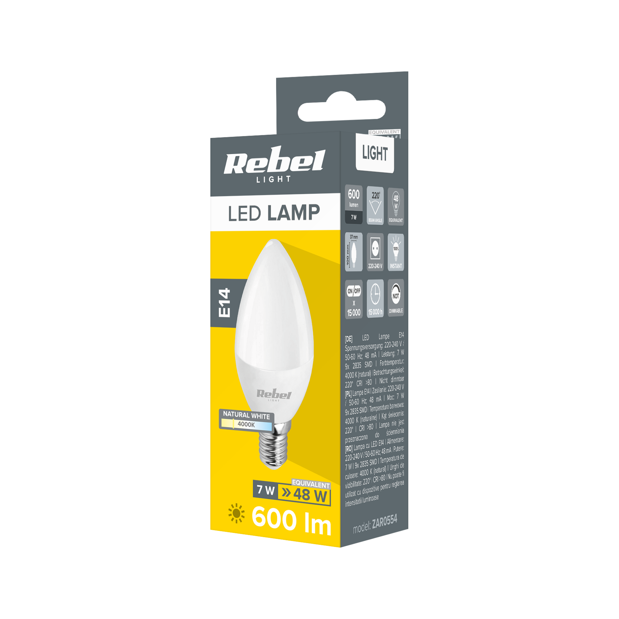 Dlaczego warto wybrać lampę LED Rebel Świeca 7W?Jeśli chcesz zastąpić tradycyjną żarówkę o mocy 48 W nowoczesnym źródłem światła, lampa Rebel Świeca 7 W będzie odpowiednim rozwiązaniem. Oferuje ona znaczne oszczędności energii, a także długotrwałe, wysokiej jakości oświetlenie.