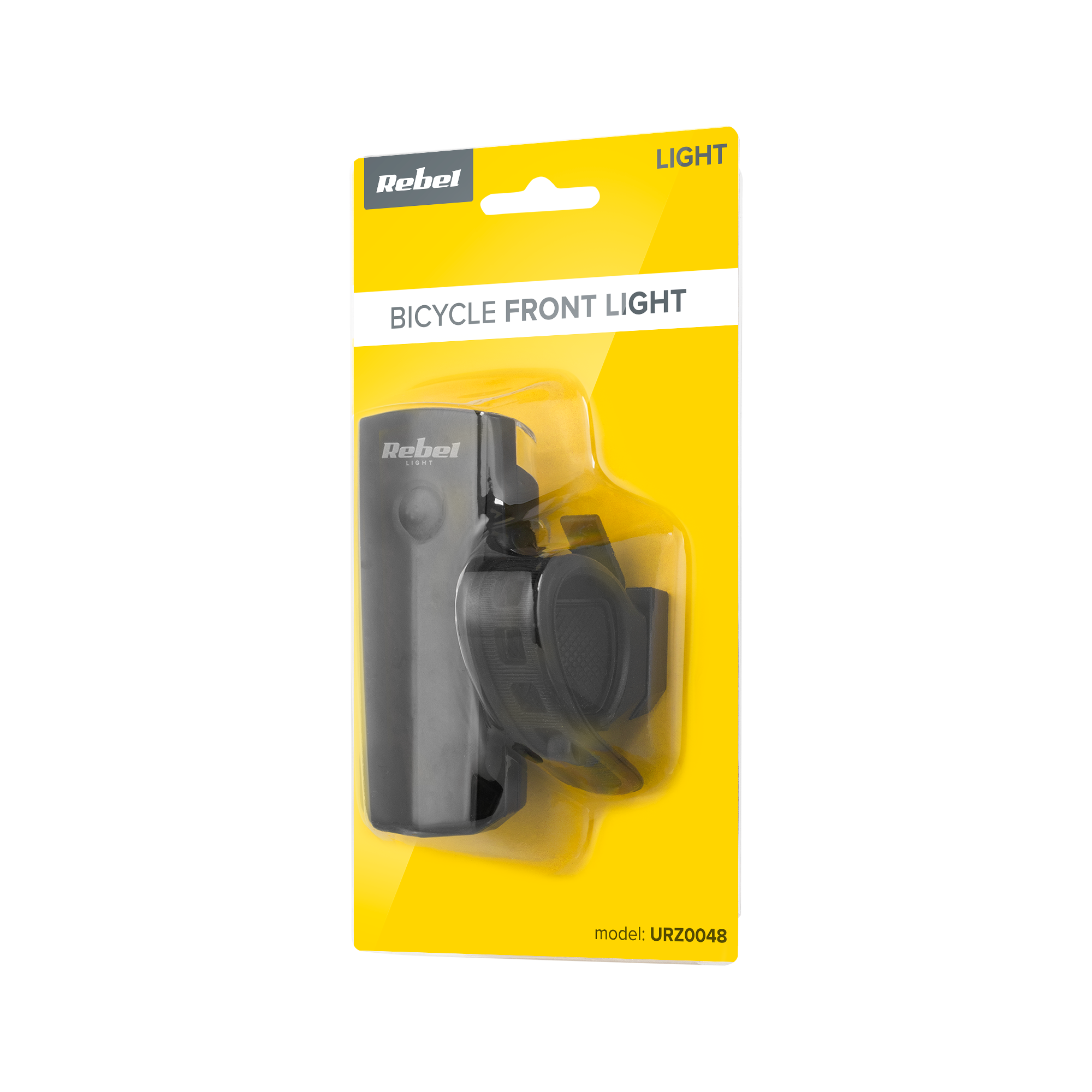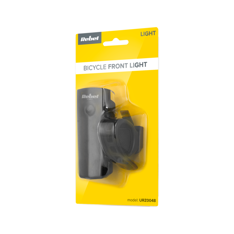 Lampa rowerowa przednia Rebel 1WLampa rowerowa Rebel o mocy 1W to niezawodne oświetlenie, które zwiększa widoczność i bezpieczeństwo na drodze. Przeznaczona do montażu na widelcu, pasuje do rowerów o średnicy rury od 22,2 do 31,8 mm.