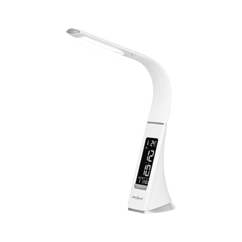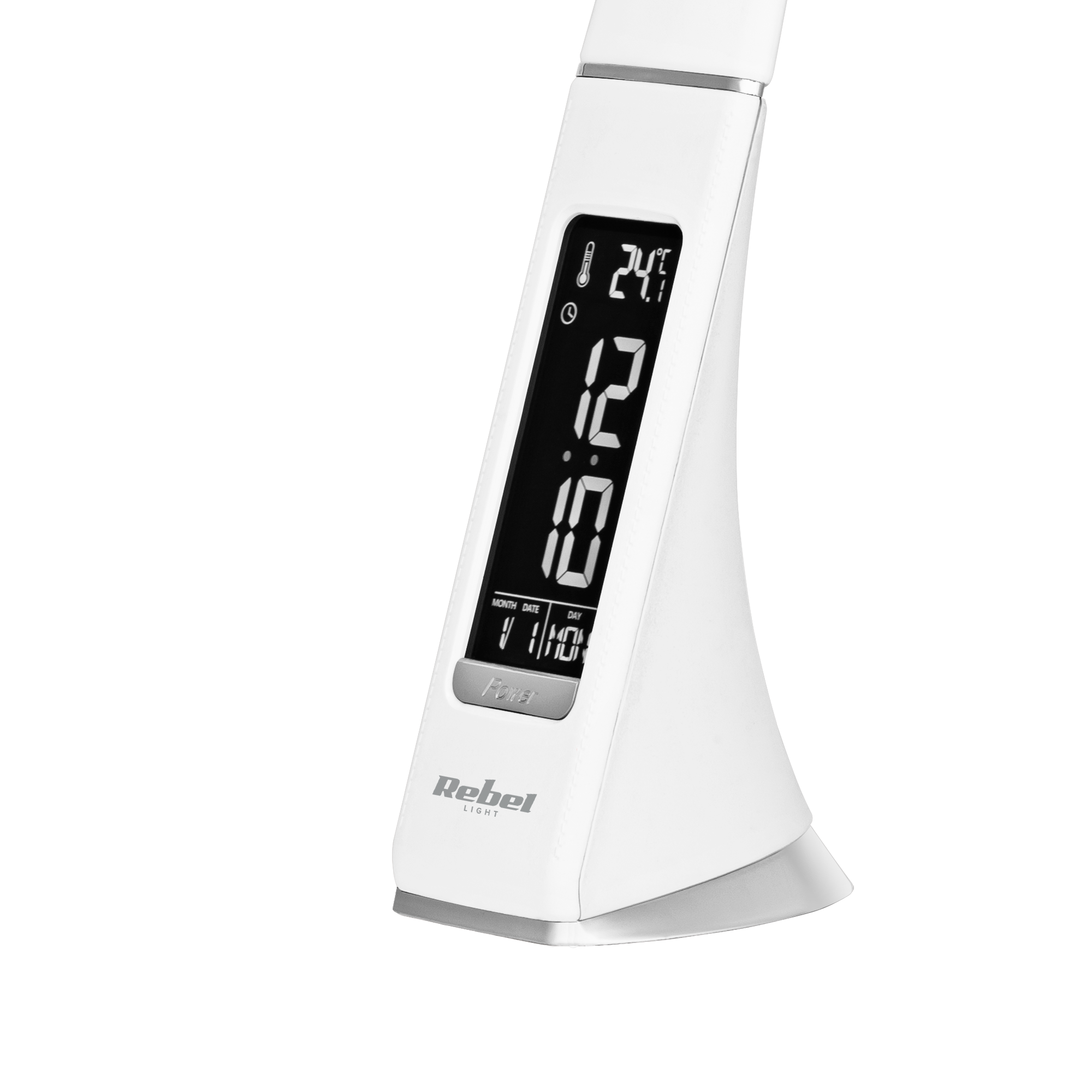 Lampka LED na biurko z wyświetlaczemLubisz proste i funkcjonalne urządzenia? Jeśli tak, na pewno spodoba Ci się lampka biurkowa LED z wyświetlaczem marki Rebel. Dzięki wspomnianemu wyświetlaczowi, w jakie zostało wyposażone urządzenie, będziesz znał aktualną godzinę, datę, dzień tygodnia oraz temperaturę, a także będziesz mógł ustawić alarm i drzemkę – jest to idealne rozwiązanie dla osób, które cenią sobie praktyczne rozwiązania. Co ważne, choć ta lampka na biurko zasilana jest sieciowo, nawet w przypadku zaniku prądu możesz podtrzymać ustawienia czasu oraz działanie budzika za pomocą baterii.