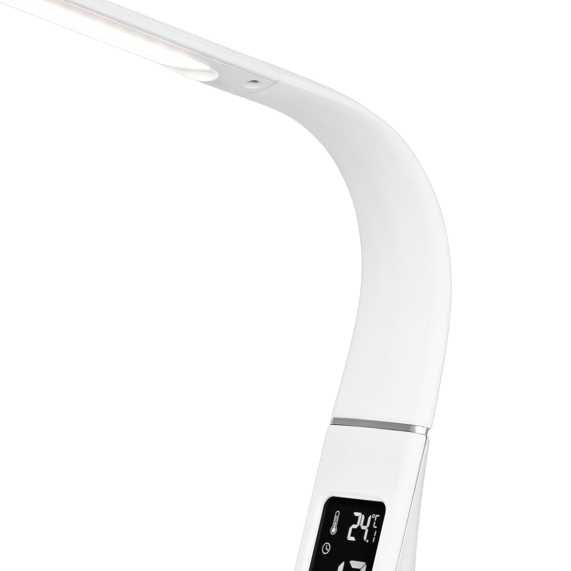 Funkcjonalna i elastycznaDodatkowe funkcje sprawiają, że model ten sprawdzi się nie tylko jako oświetlenie na biurko, ale także jako lampka nocna. Wszystko dzięki 3-stopniowej regulacji jasności świecenia, która zadba by po zmroku światło nie raziło w oczy. Co więcej, urządzenie pozwala także na zmianę jasności, a nawet całkowite wyłączenie wyświetlacza.