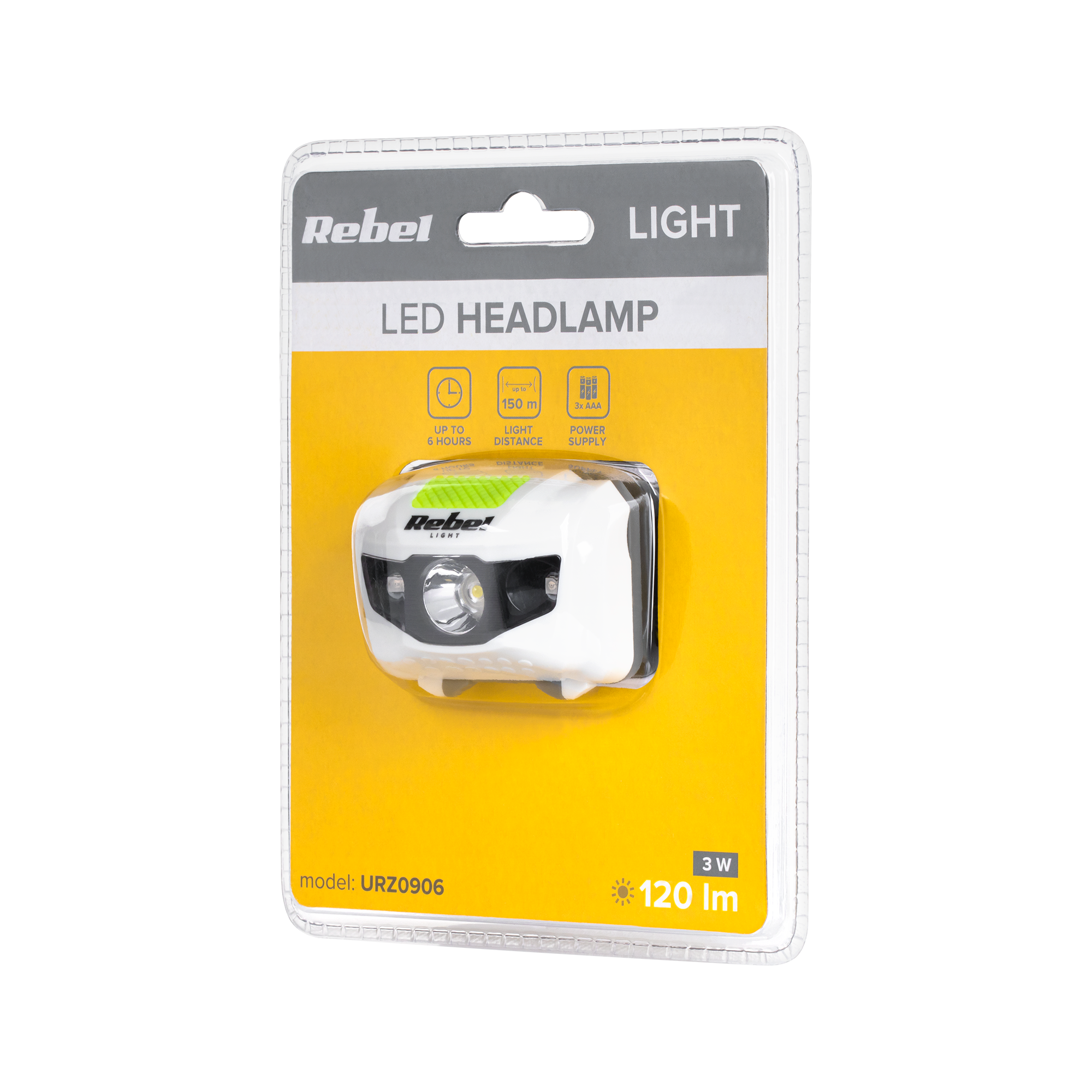 Zasięg i wydajnośćLatarka generuje strumień świetlny o mocy 120 lm, oświetlając przestrzeń na odległość do 150 metrów. Zapewnia do 6 godzin ciągłej pracy na jednym zestawie trzech baterii AAA (baterie nie są dołączone).