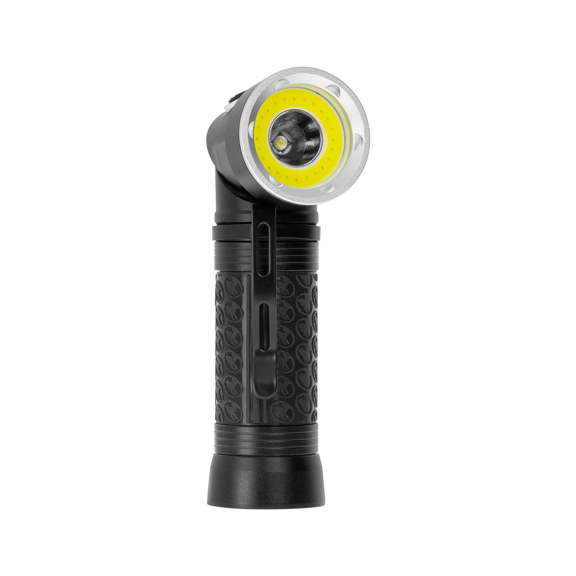 Dwa źródła światłaKomfortowe użytkowanie latarki Rebel zapewniają dwa źródłami światła. Pierwsze z nich LED o mocy 2,9 W generuje wiązkę o zasięgu 200 m i strumieniu 285 lm. Z kolei boczne światło COB o mocy 1,5 W świeci z jasnością 147 lm. Urządzenie może pełnić funkcję lampy roboczej, co jest szczególnie przydatne w przypadku remontów lub prac w garażu lub na zewnątrz.