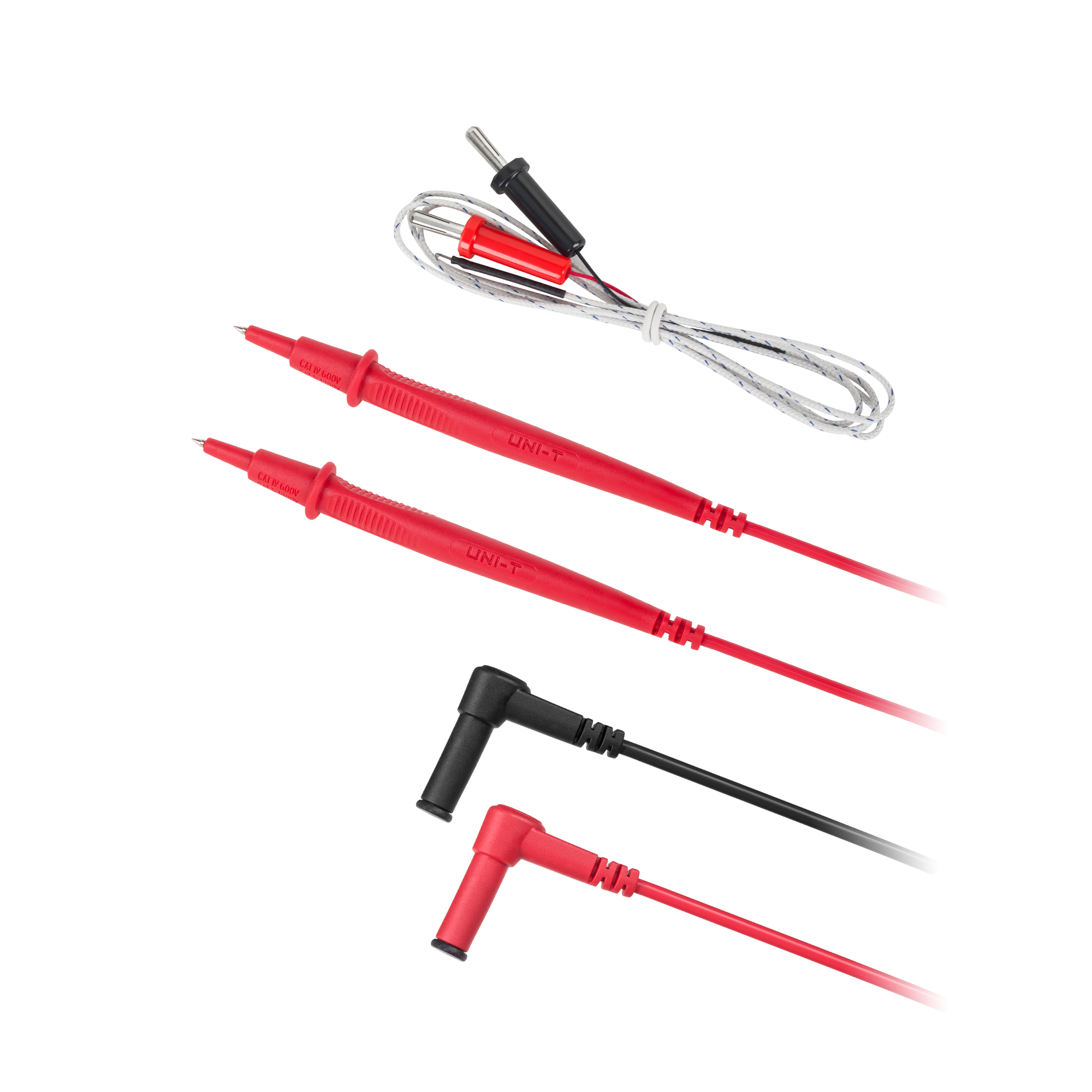 W zestawie: baterie, kable pomiarowe, sonda pomiaru temperatury, etui