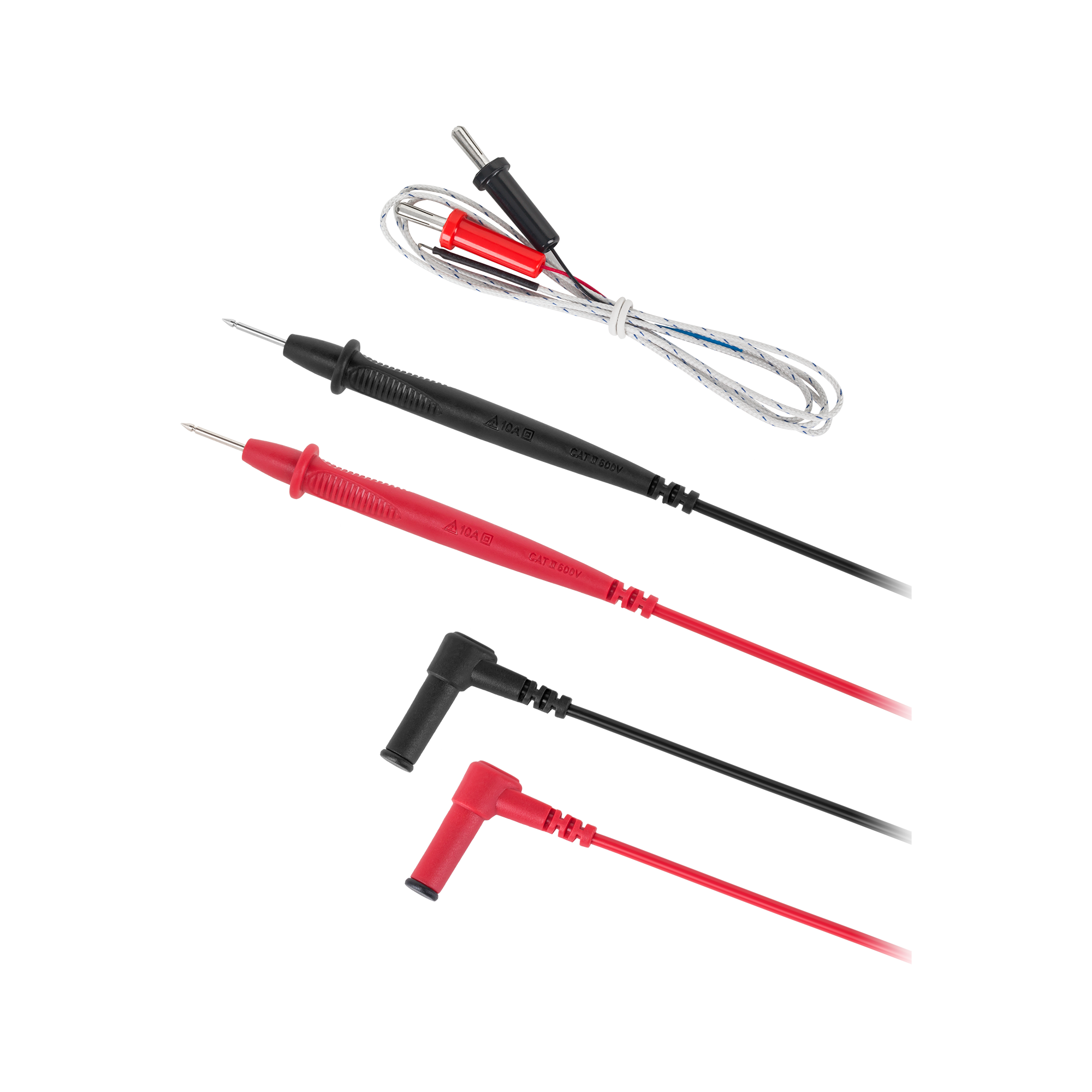W zestawie: Baterie, przewody pomiarowe, termopara