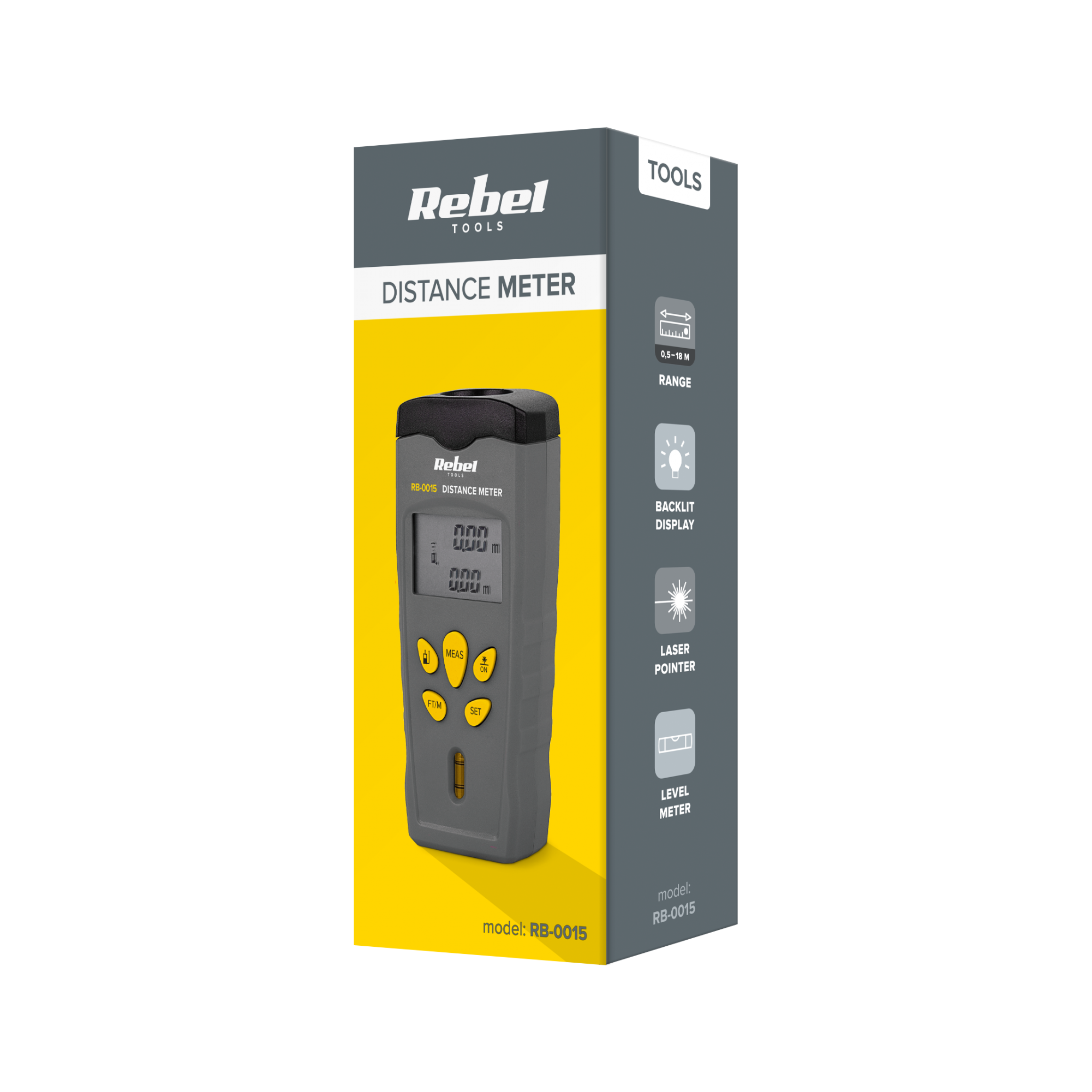 Miernik dystansu REBEL RB-0015Miernik dystansu REBEL RB-0015 to precyzyjne narzędzie laserowe, idealne do dokładnych pomiarów odległości, powierzchni oraz objętości. Dzięki swojej funkcjonalności i kompaktowej budowie, jest niezastąpionym urządzeniem zarówno dla profesjonalistów, jak i do użytku domowego.