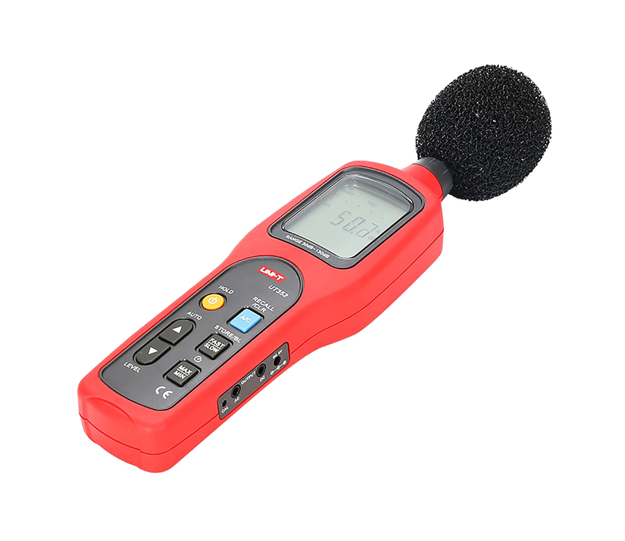 Solidna konstrukcja i dodatkowe funkcjeMiernik UT352 jest wyposażony w mikrofon pojemnościowy 1/2”, co zapewnia wysoką precyzję pomiarów. Urządzenie posiada wyjścia AC (ok. 0,707 V przy impedancji 600 ?) i DC (ok. 10 mV/dB przy impedancji 100 ?), co umożliwia podłączenie do zewnętrznych systemów rejestracji lub analizy danych. Zasilany czterema bateriami 1,5 V (LR6), UT352 jest przenośny i wygodny w użytkowaniu, a wskaźnik niskiego poziomu baterii oraz funkcja automatycznego wyłączania zwiększają jego efektywność.
